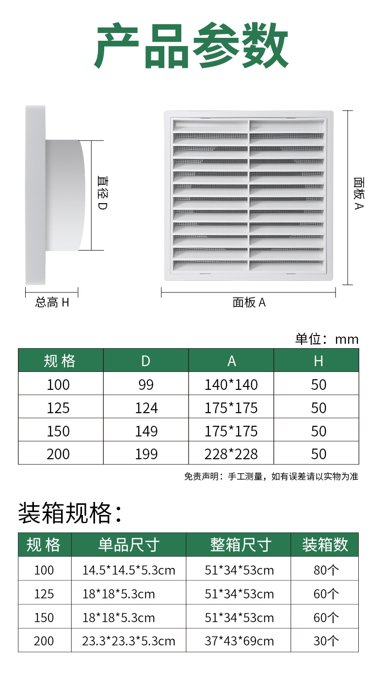 욕실 주방 배기 배기 비 커버 셔터 환기 냉각 벤트 커버 그릴 셔터 에어 아울렛