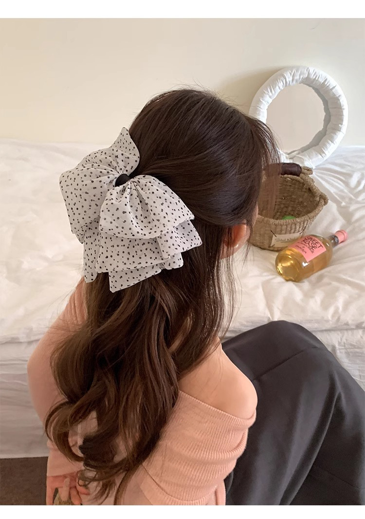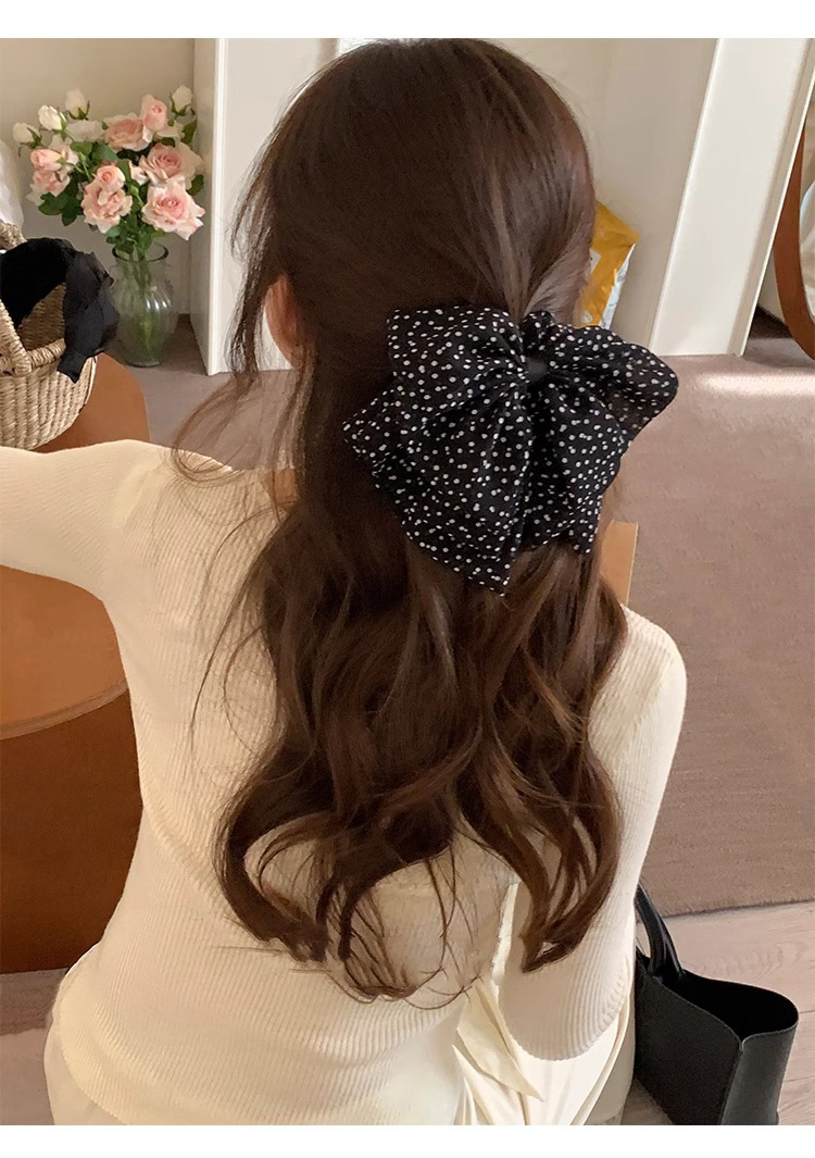 프랑스 복고풍 분위기 웨이브 도트 쉬폰 활 우아한 헤어핀 여성의 2025 새로운 헤드 디스크 헤어 그랩 클립스토어 가기