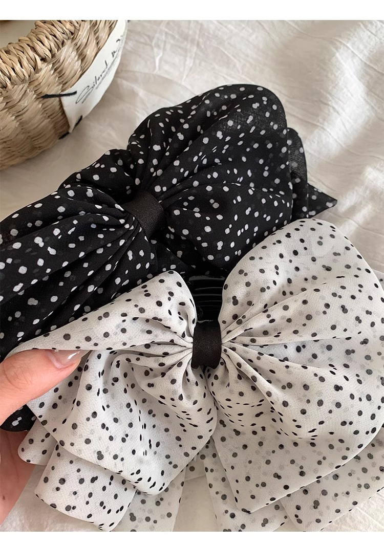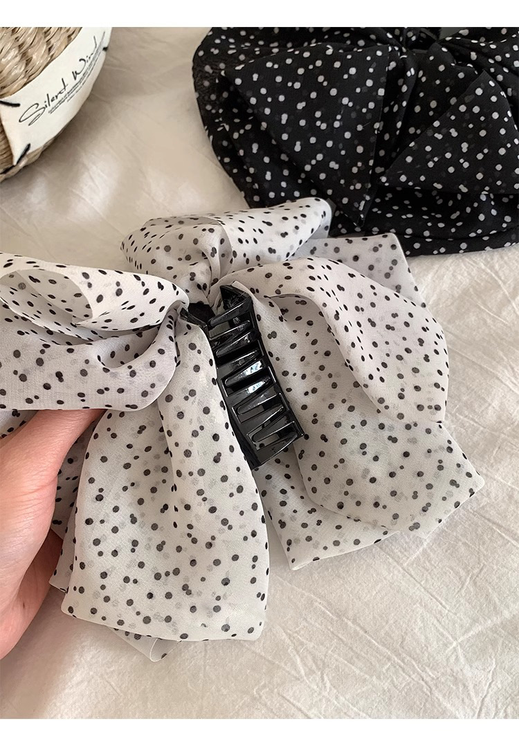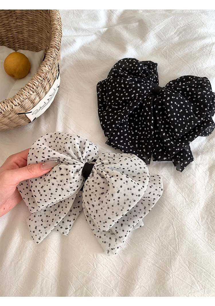 프랑스 복고풍 분위기 웨이브 도트 쉬폰 활 우아한 헤어핀 여성의 2025 새로운 헤드 디스크 헤어 그랩 클립