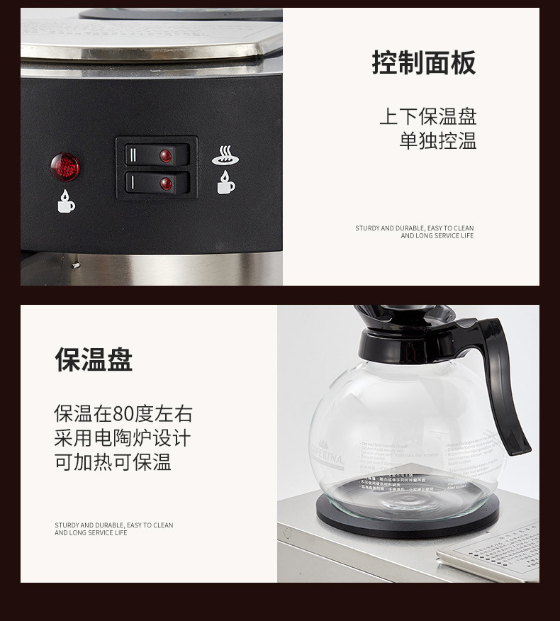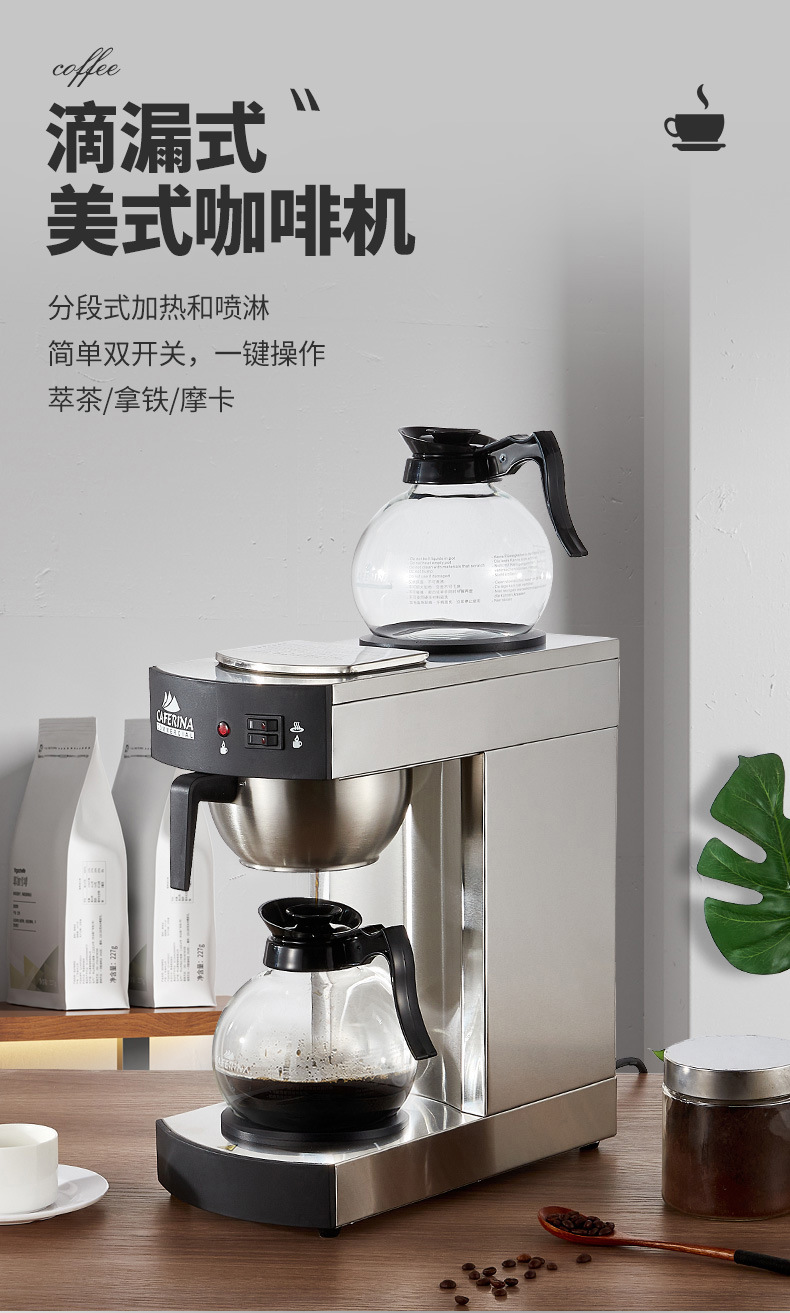 CAFERINARH330 커피머신, 커피 드립머신, 상업용 미국식 음료머신, 추출용 더블 포트, 다기능스토어 가기