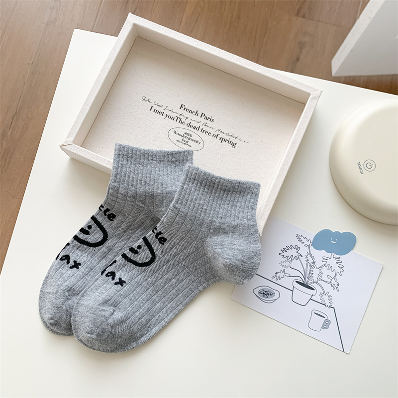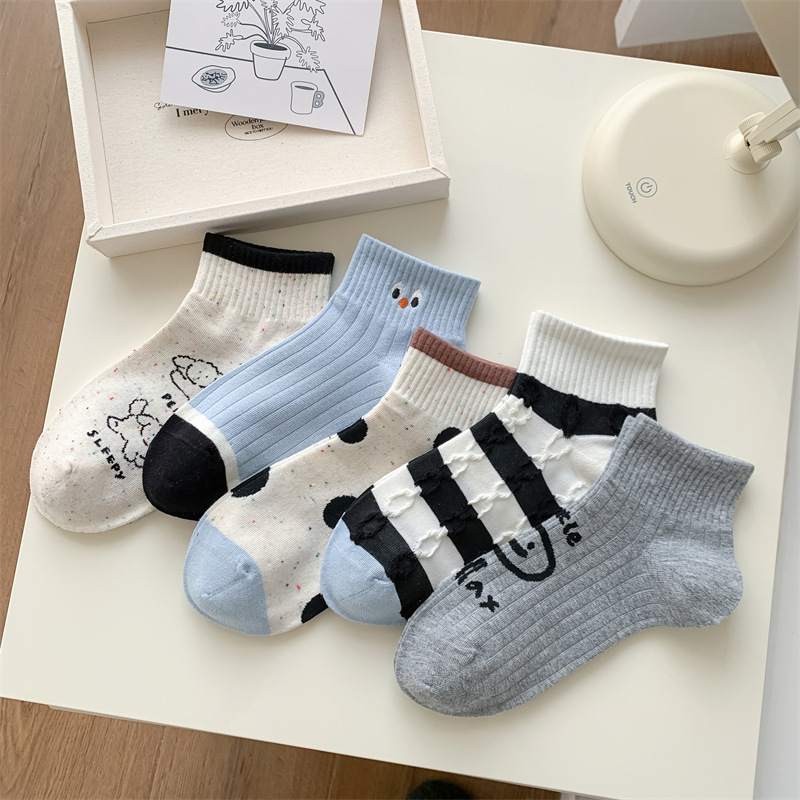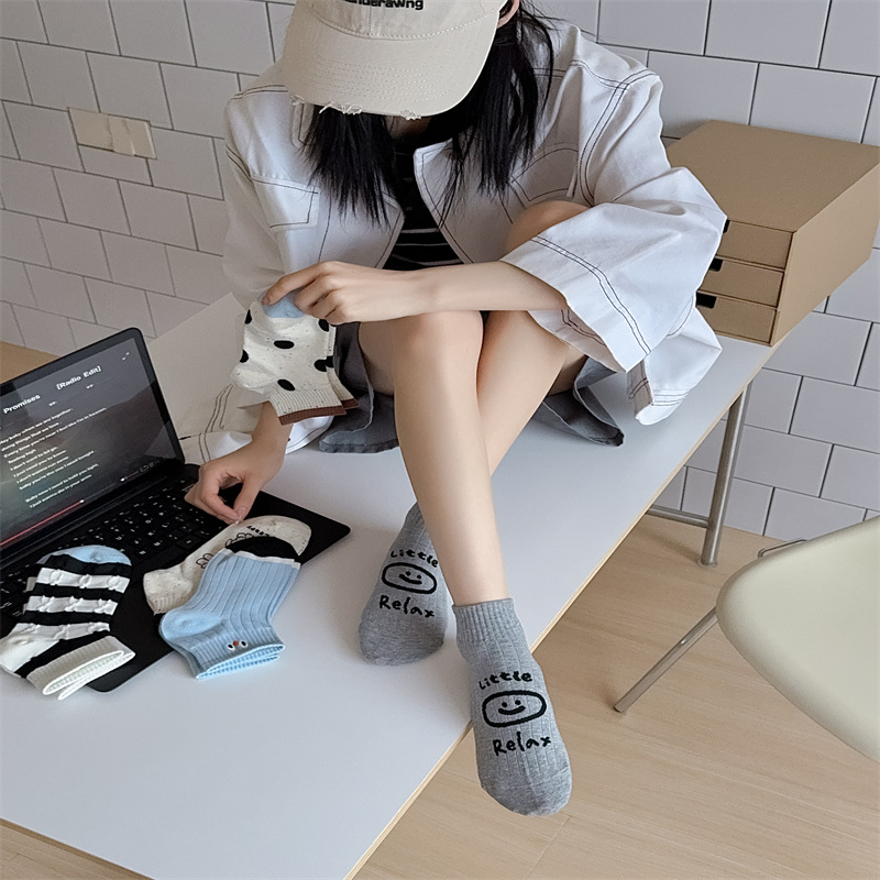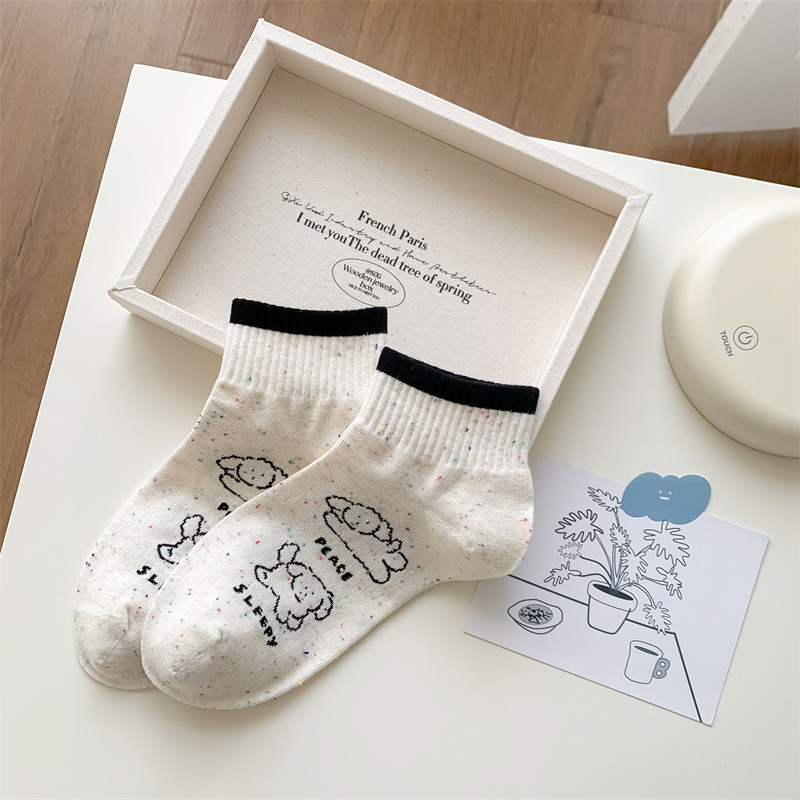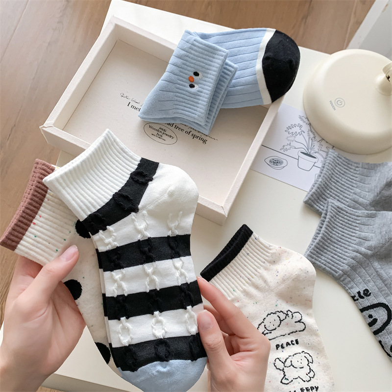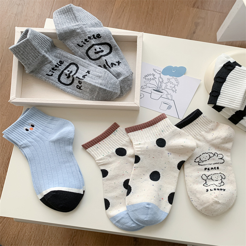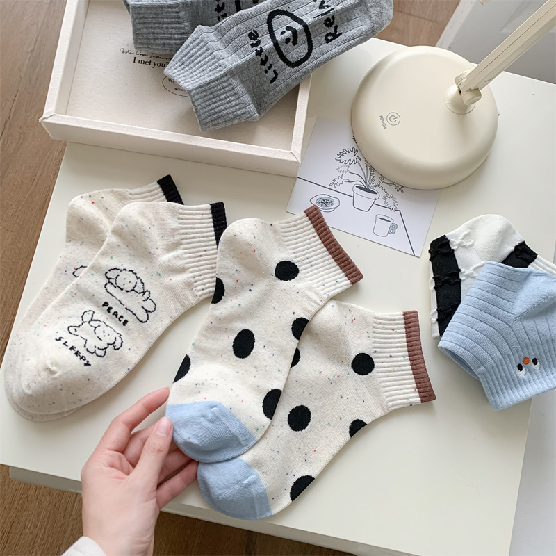 25 봄과 가을 여성의 새로운 얇은 블랙 웨이브 도트 스트라이프 패턴 땀 흡수 스포츠 양말 여성 양말 Instagram 패션스토어 가기