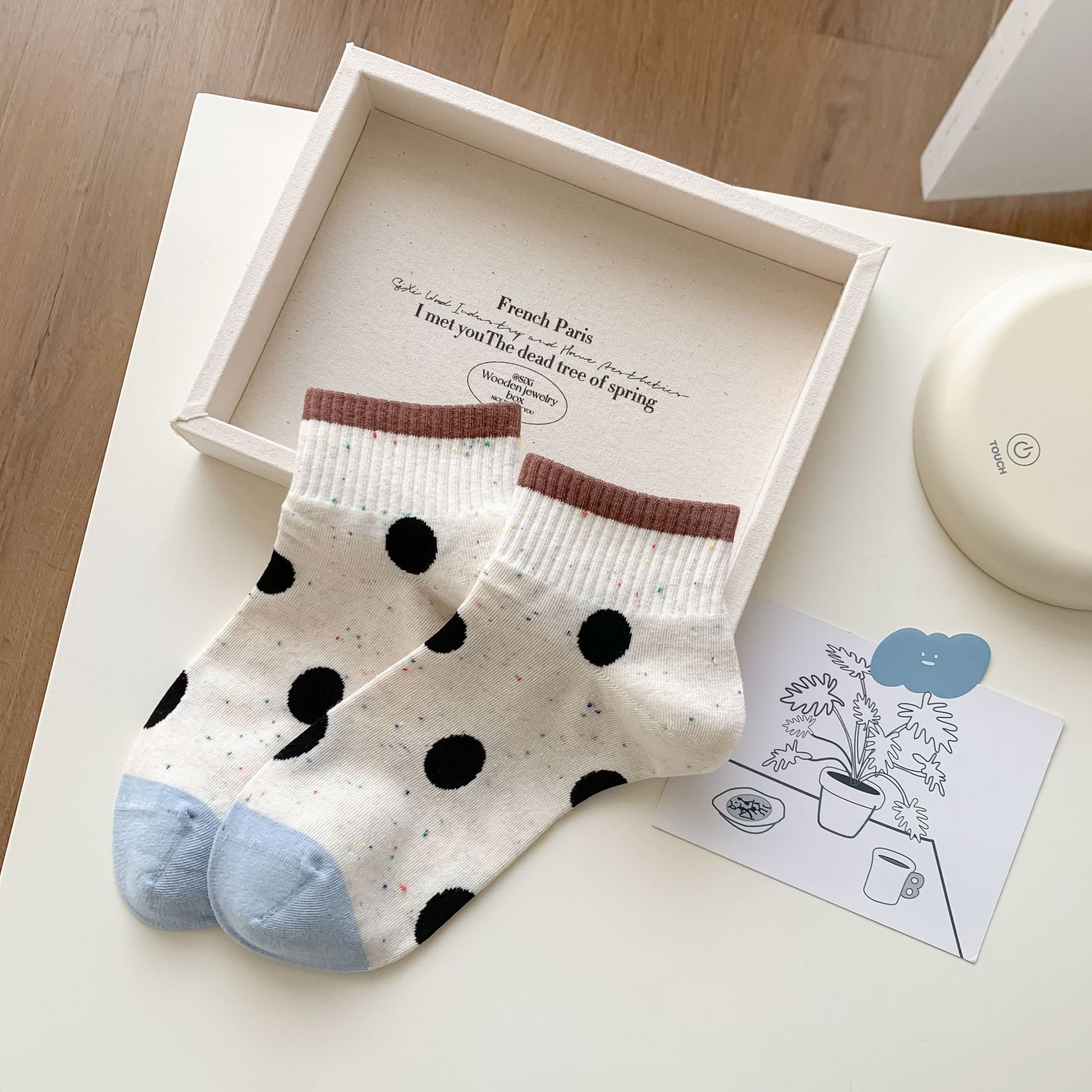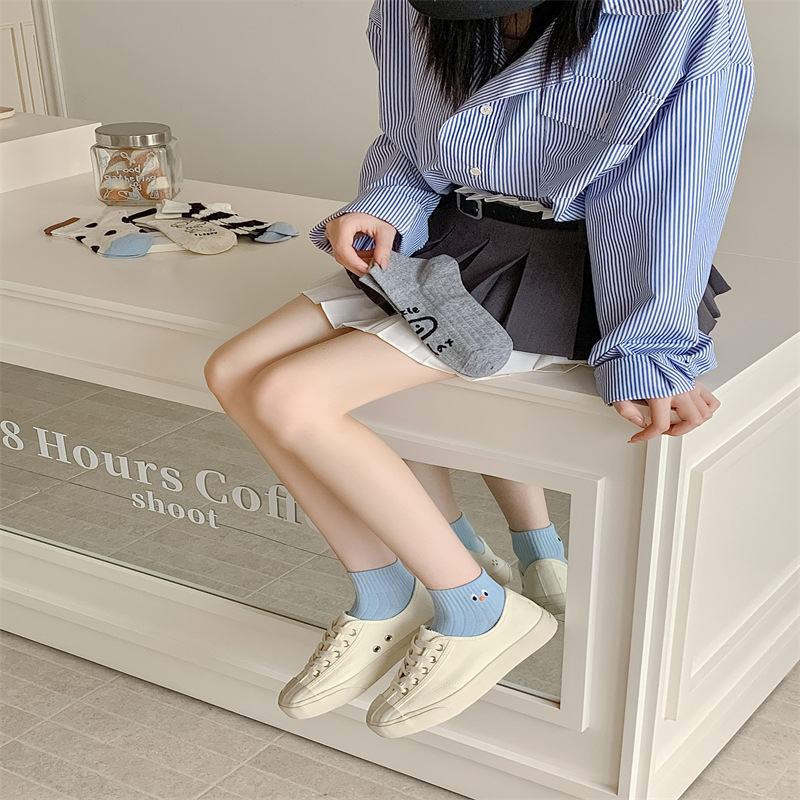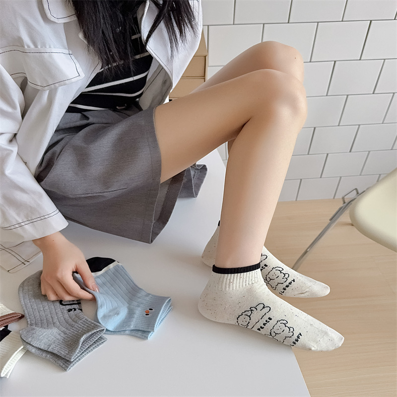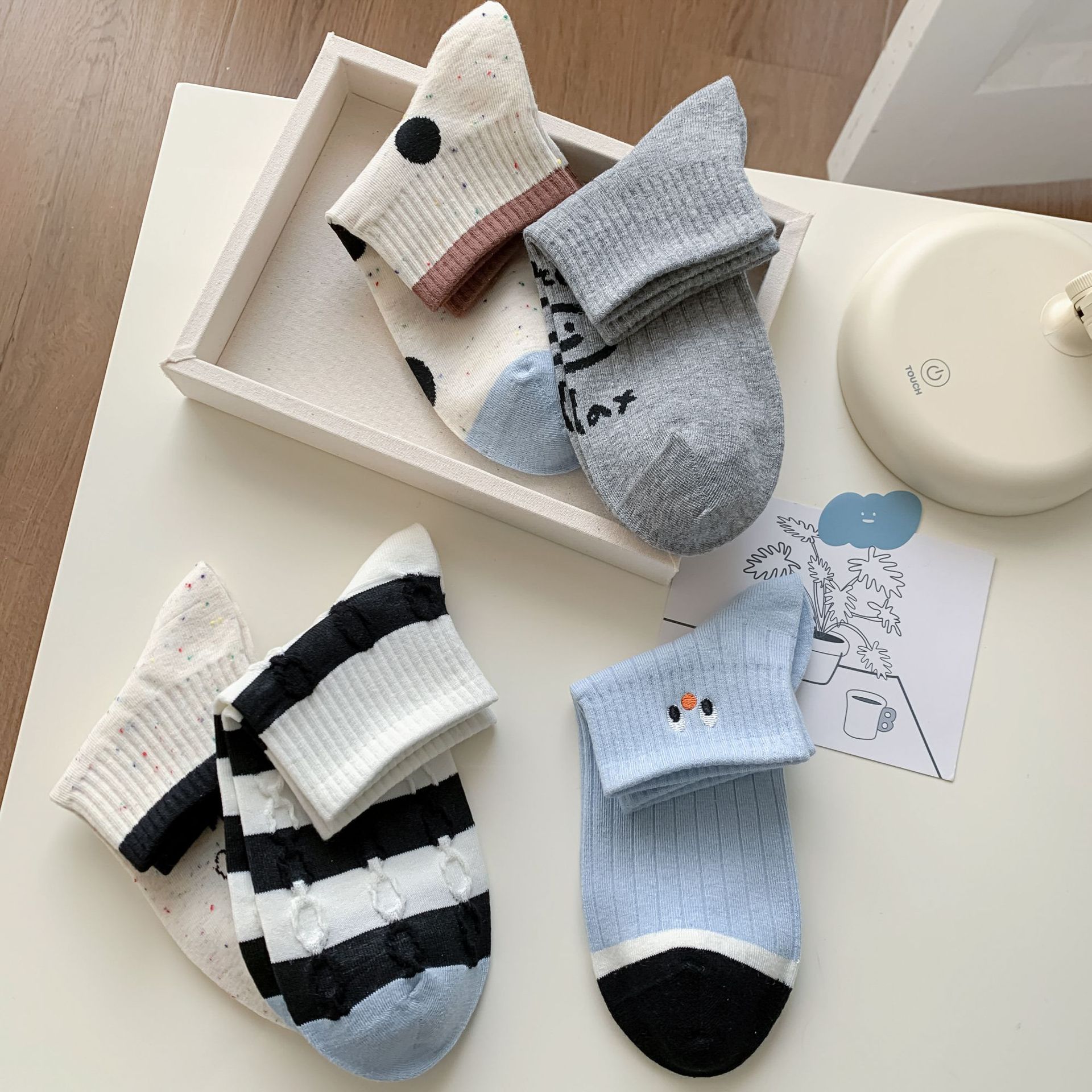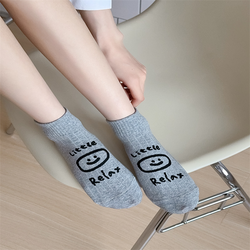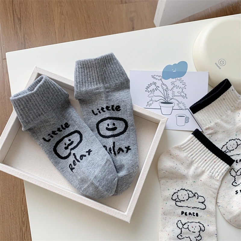 25 봄과 가을 여성의 새로운 얇은 블랙 웨이브 도트 스트라이프 패턴 땀 흡수 스포츠 양말 여성 양말 Instagram 패션스토어 가기