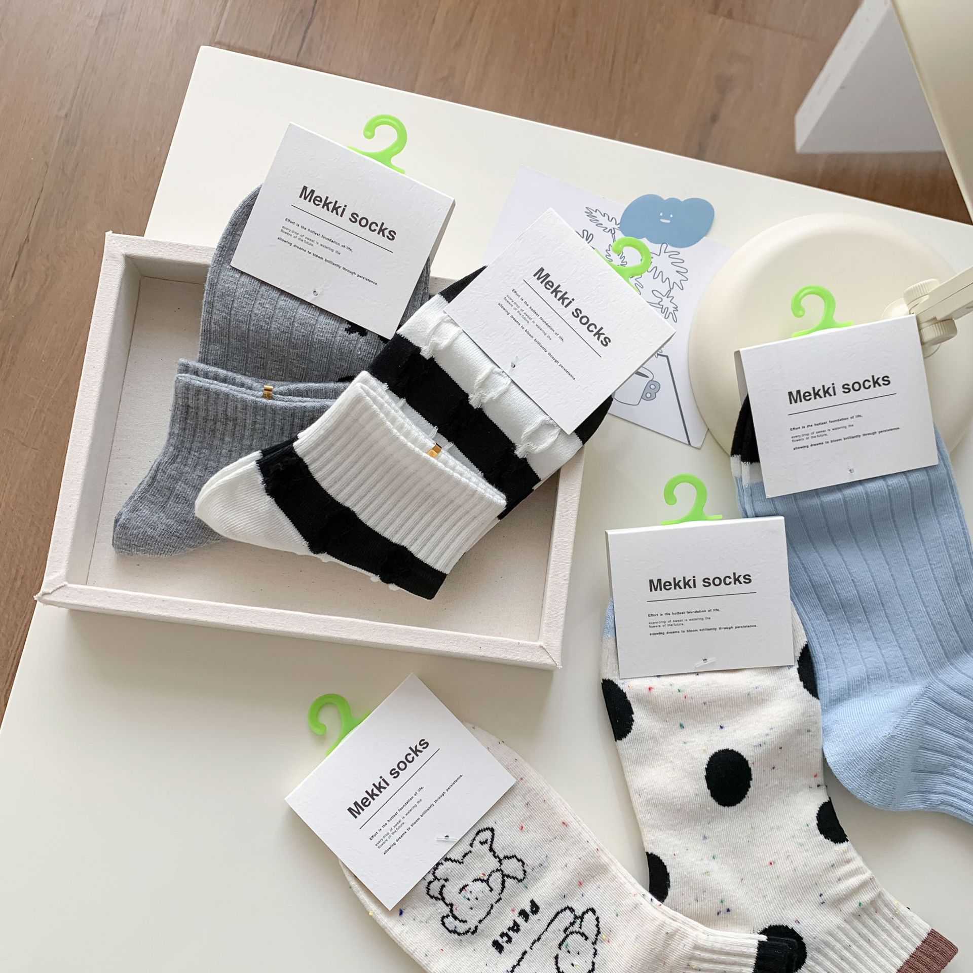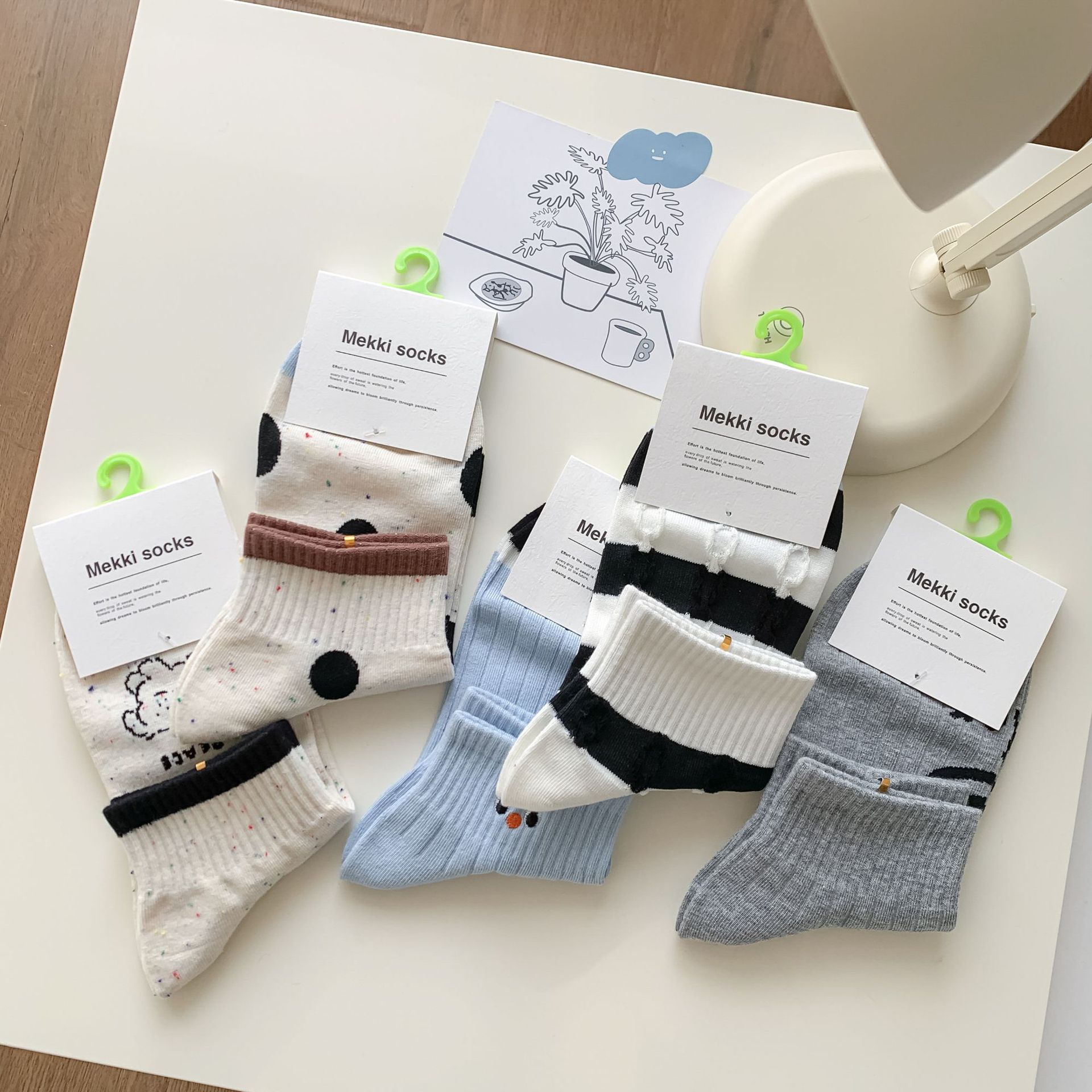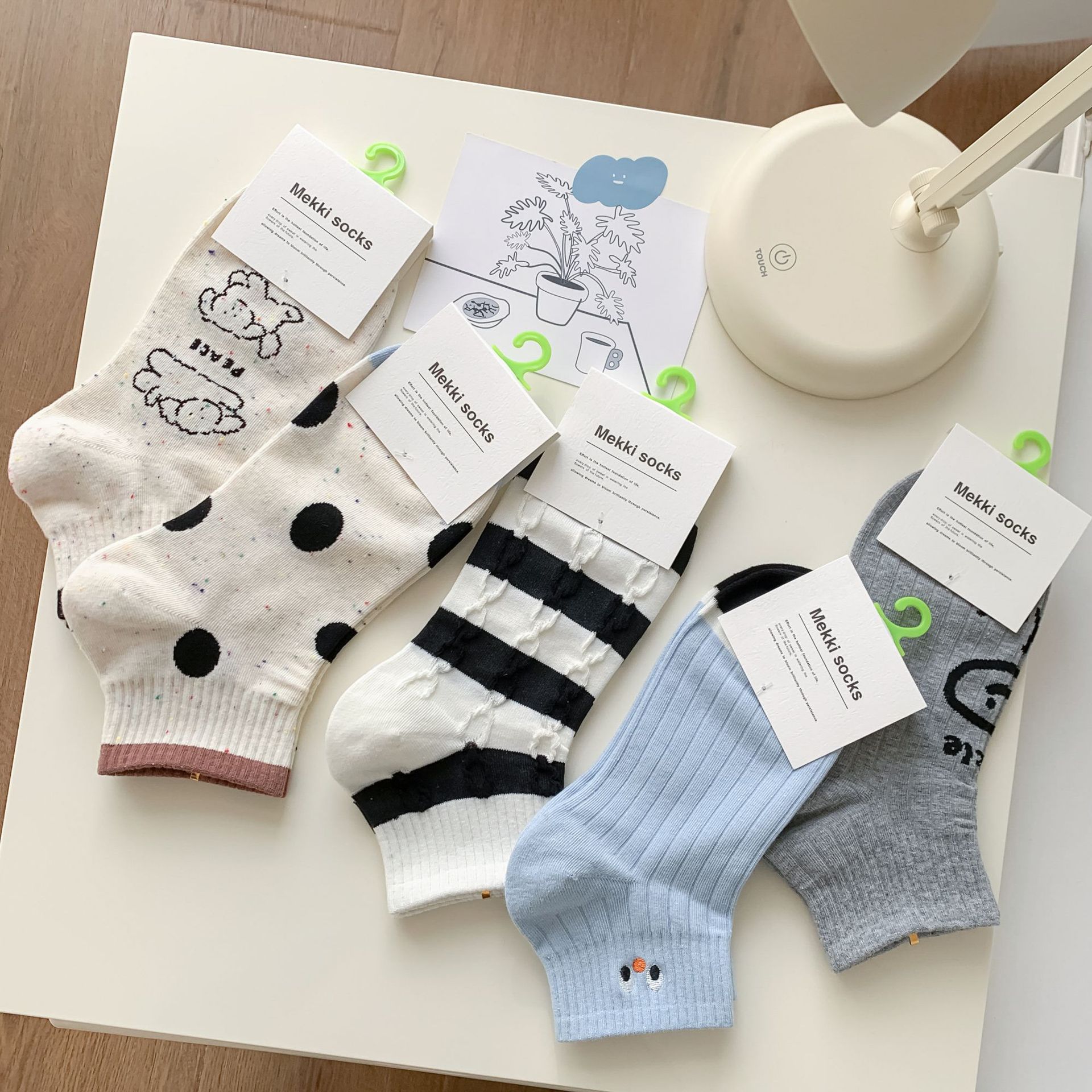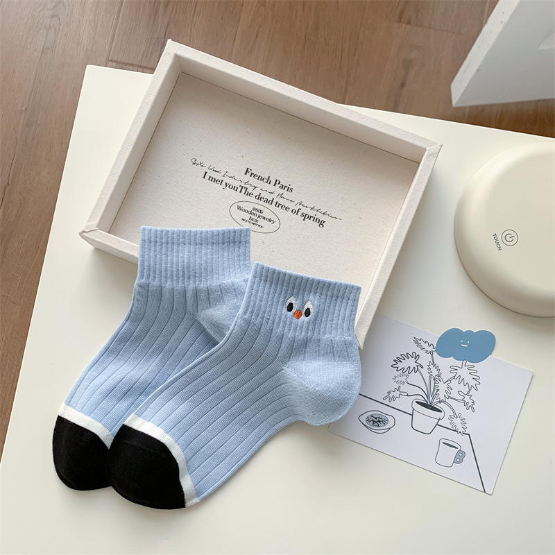 25 봄과 가을 여성의 새로운 얇은 블랙 웨이브 도트 스트라이프 패턴 땀 흡수 스포츠 양말 여성 양말 Instagram 패션스토어 가기