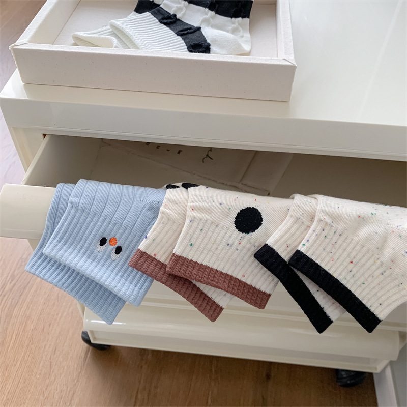 25 봄과 가을 여성의 새로운 얇은 블랙 웨이브 도트 스트라이프 패턴 땀 흡수 스포츠 양말 여성 양말 Instagram 패션