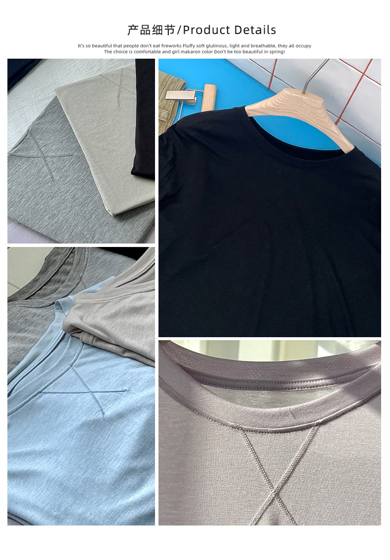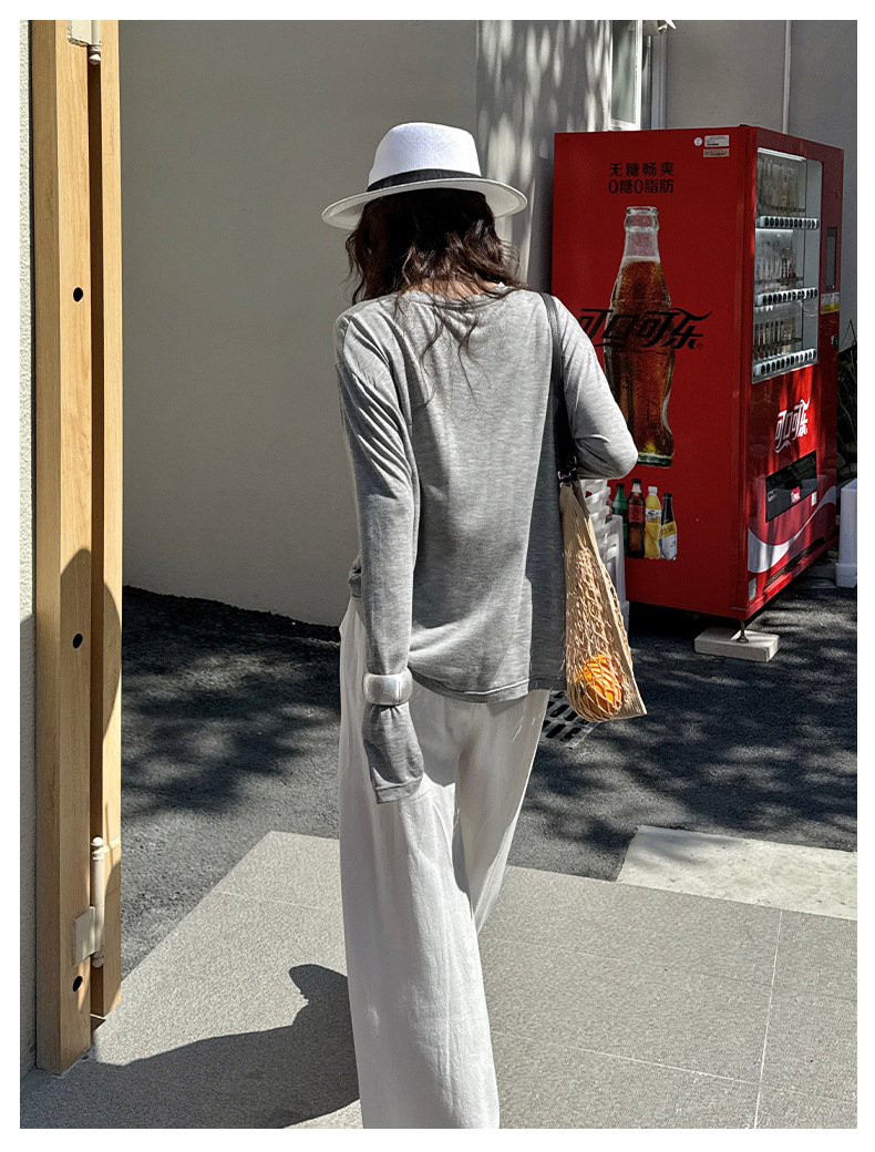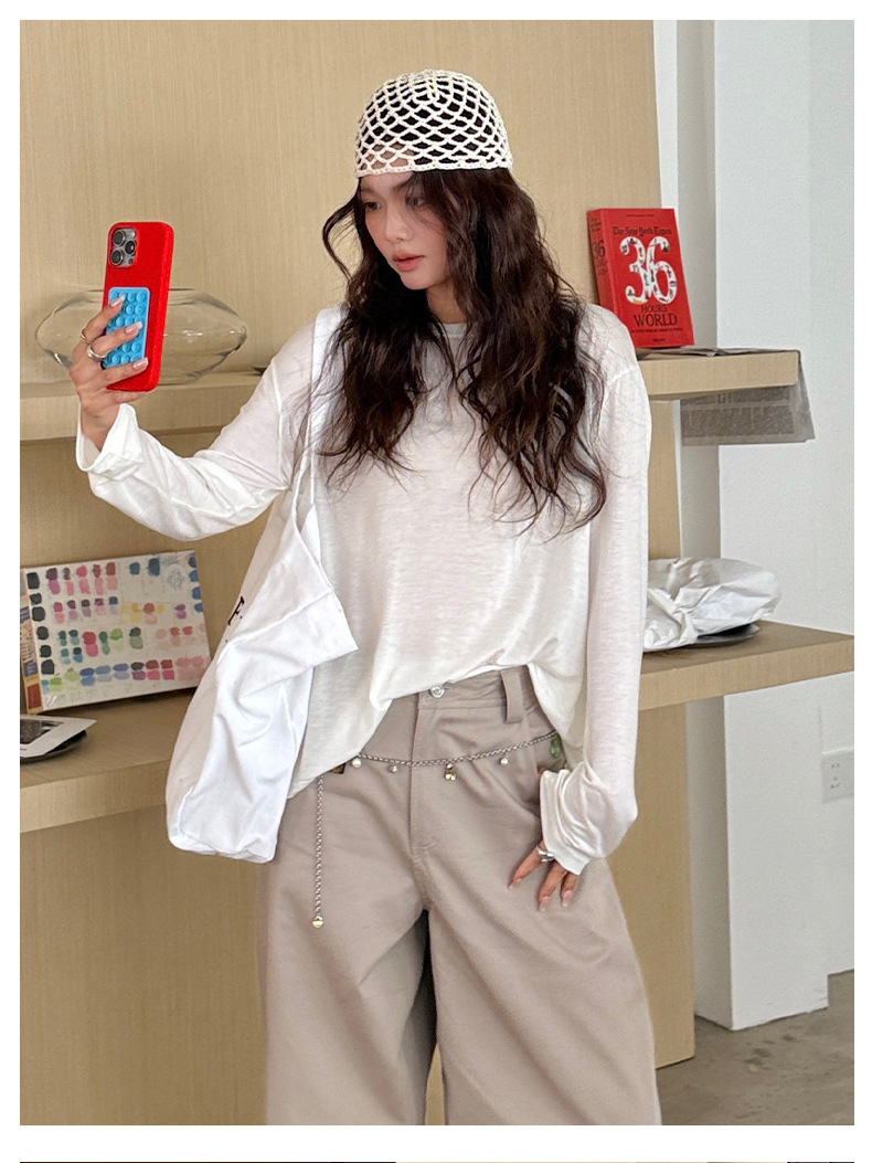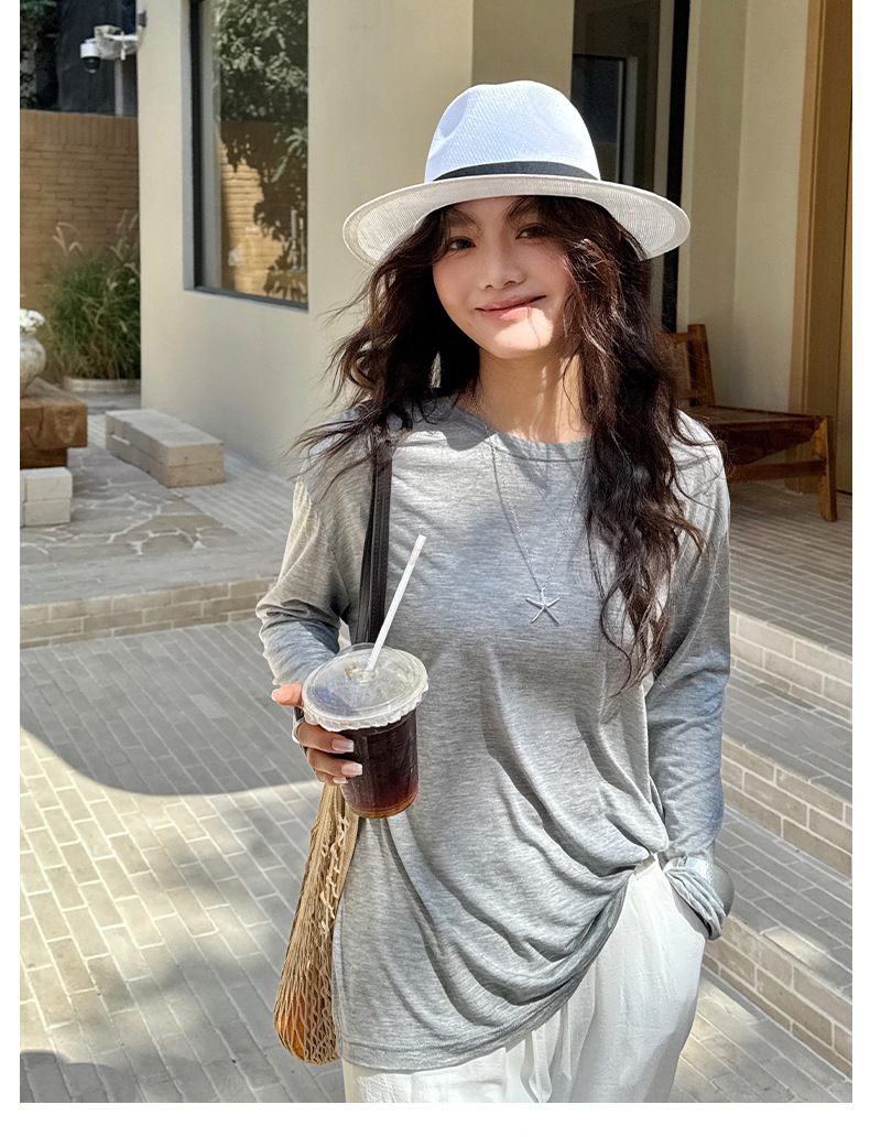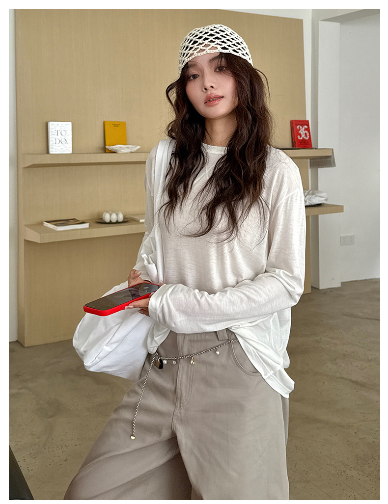 Morishima Tencel Acetic Base 셔츠 여성의 2025 봄과 여름 단색 느슨한 크루 넥 블라우스 양모 긴팔 티셔츠스토어 가기