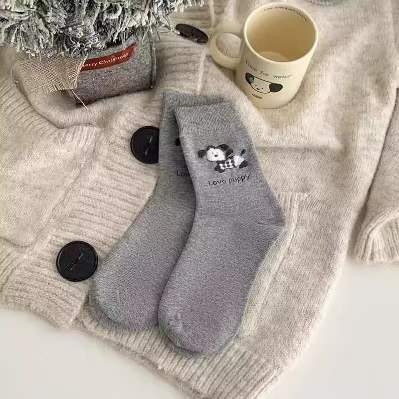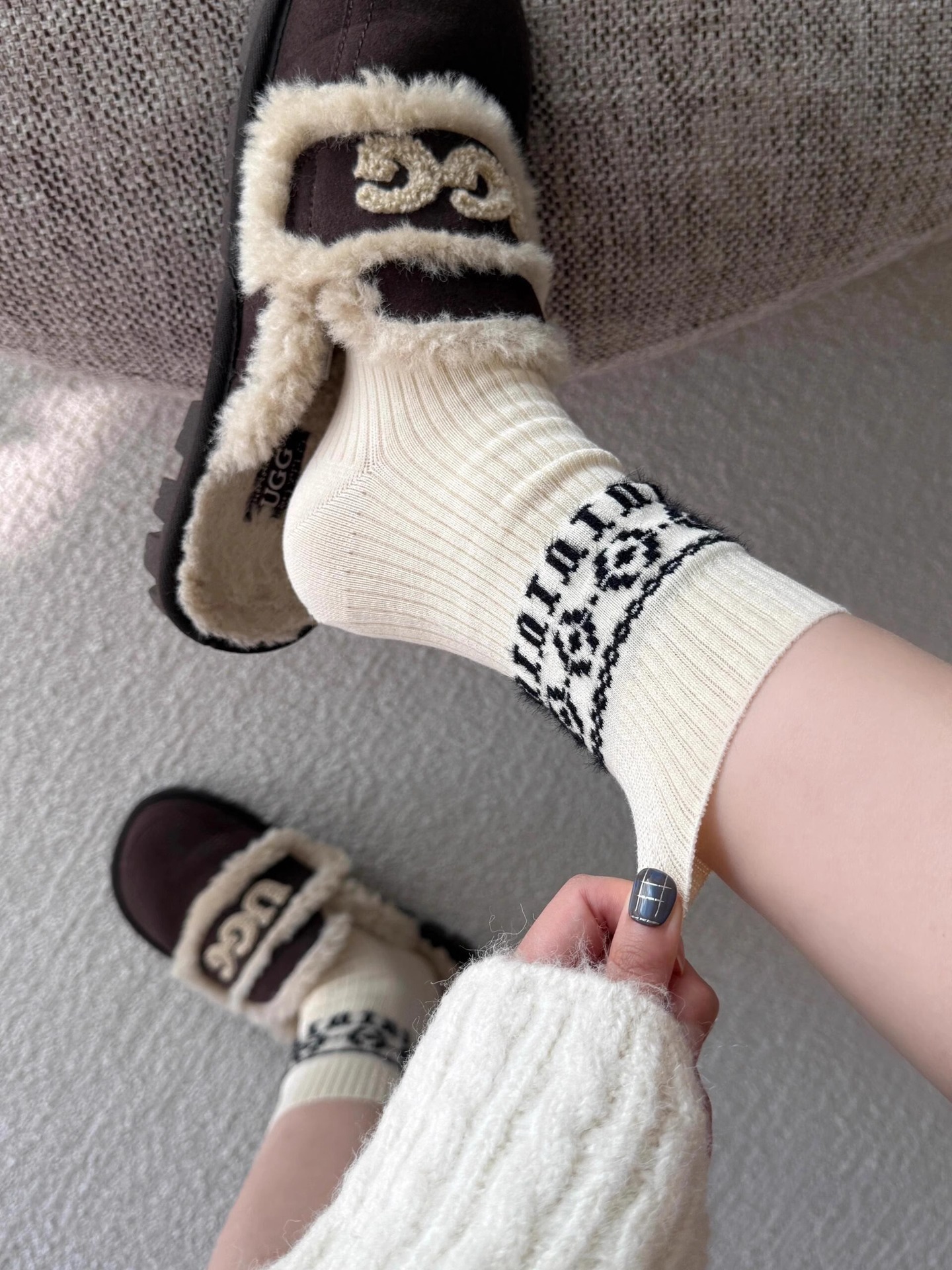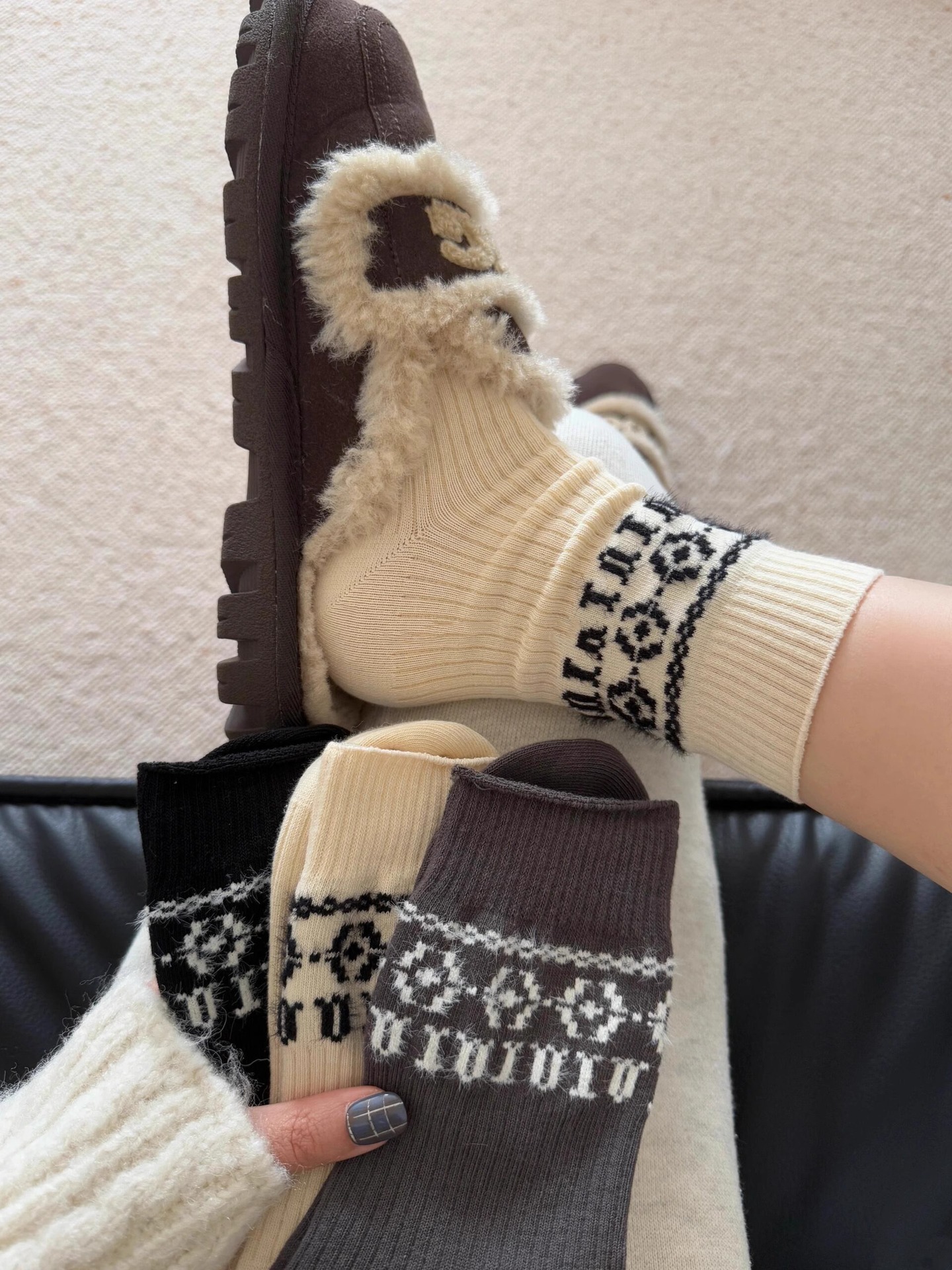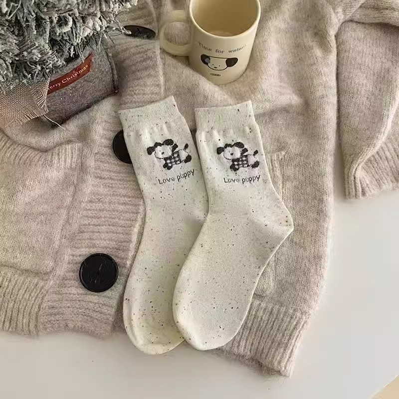 양말 여성용 종아리 중간 양말 봄과 가을 복고풍 니트 자카드 기하학적 단순 민족 스타일 페어 아일 강아지 양말