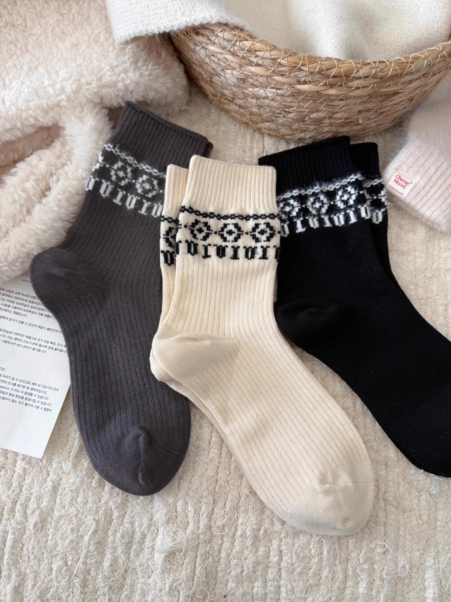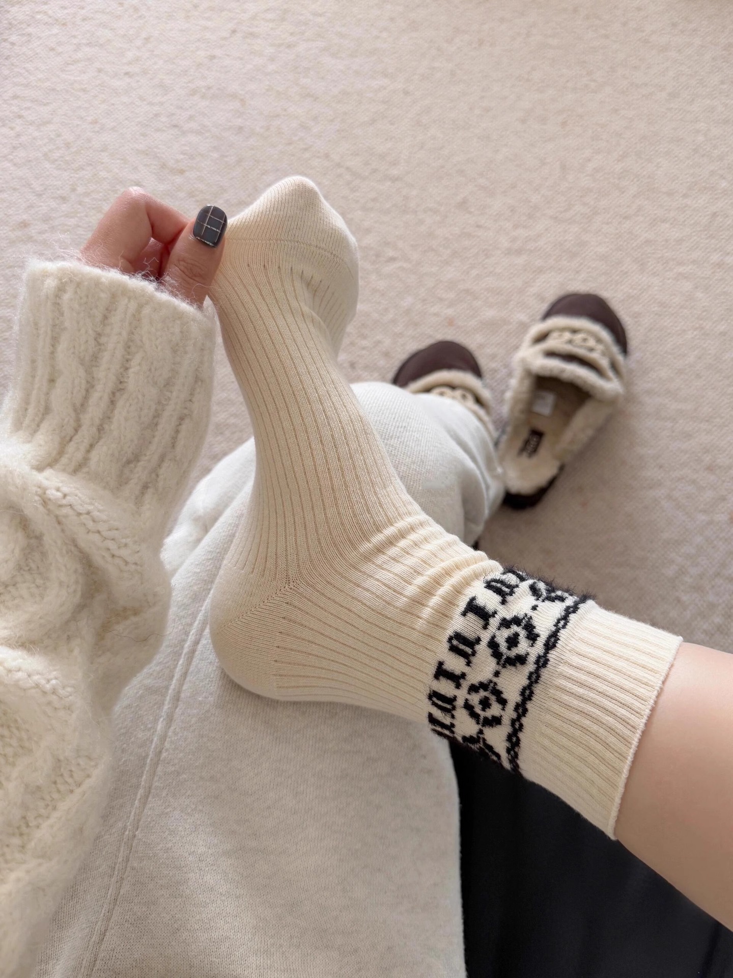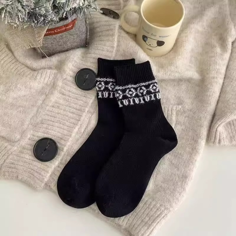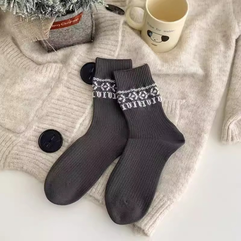 양말 여성용 종아리 중간 양말 봄과 가을 복고풍 니트 자카드 기하학적 단순 민족 스타일 페어 아일 강아지 양말스토어 가기