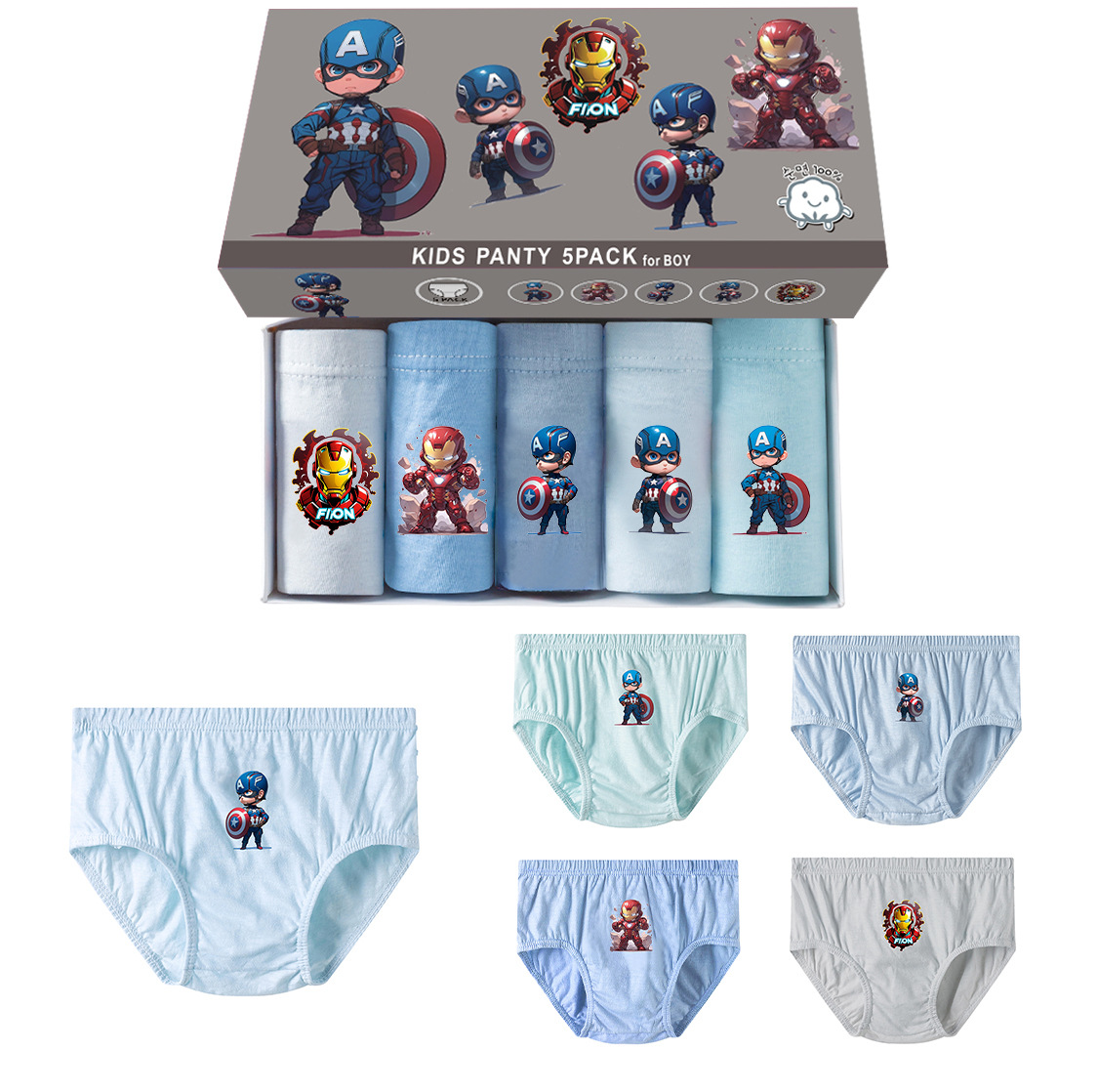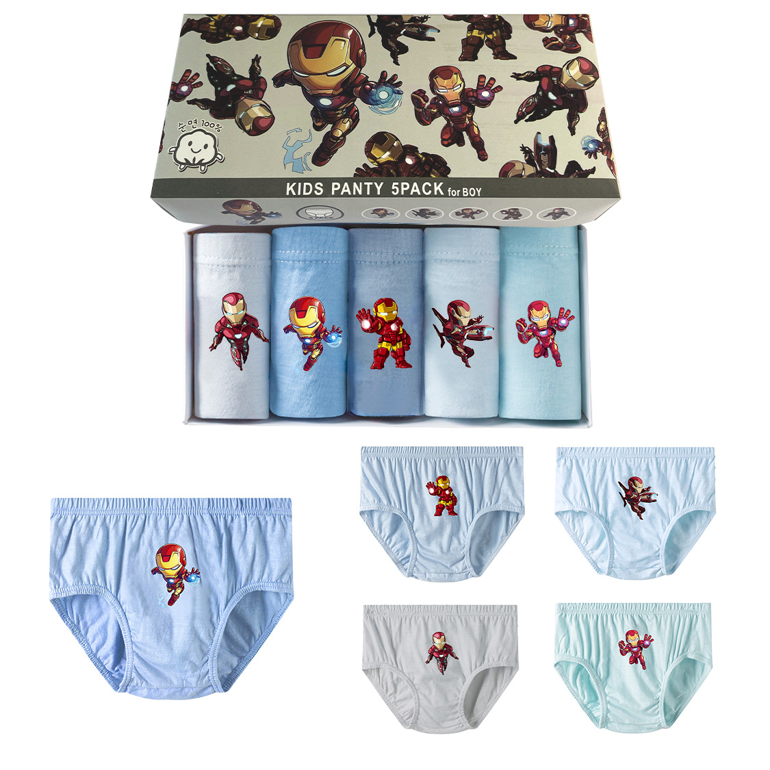 새로운 한국 소년면 브리프 어린이 만화 편안한 통기성 5 박스형 속옷 한 세대 머리카락스토어 가기