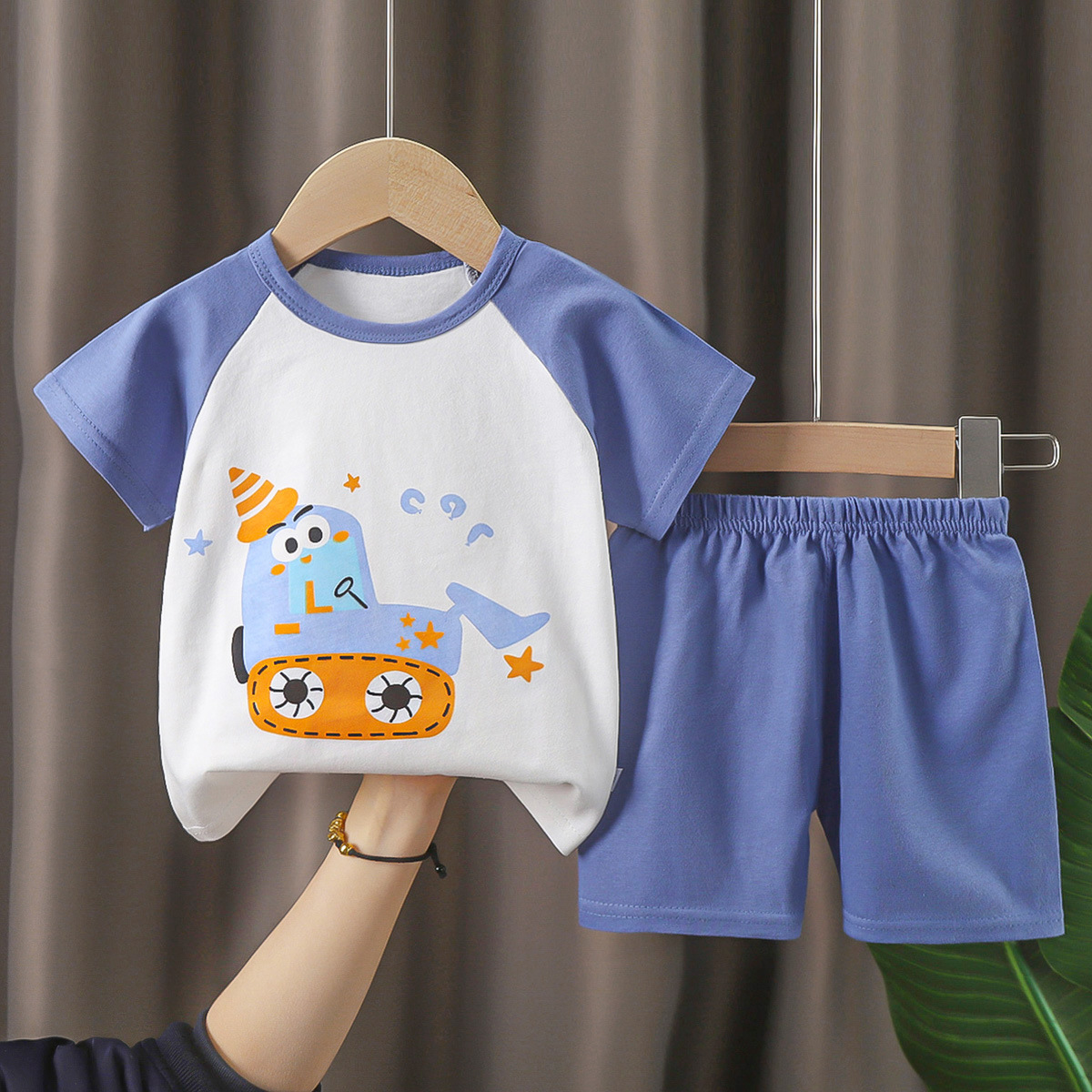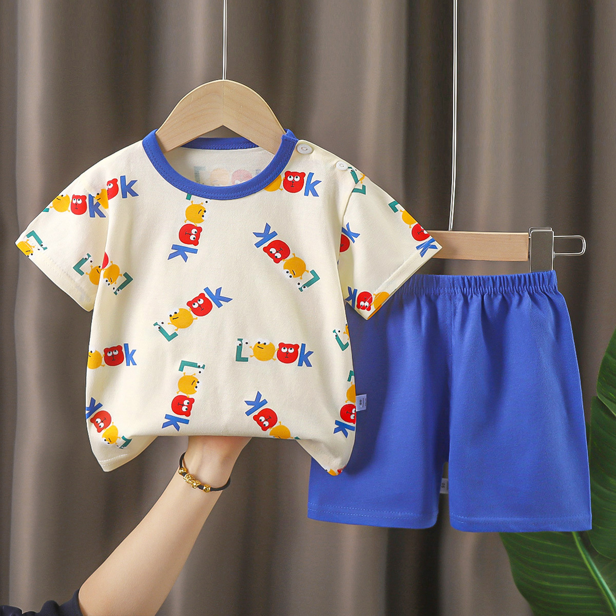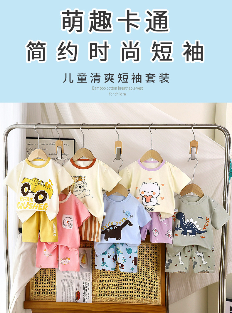 2025 새로운 어린이 반팔 세트 면화 여름 아기 티셔츠 반바지 세트 여름 얇은 아동복 도매스토어 가기