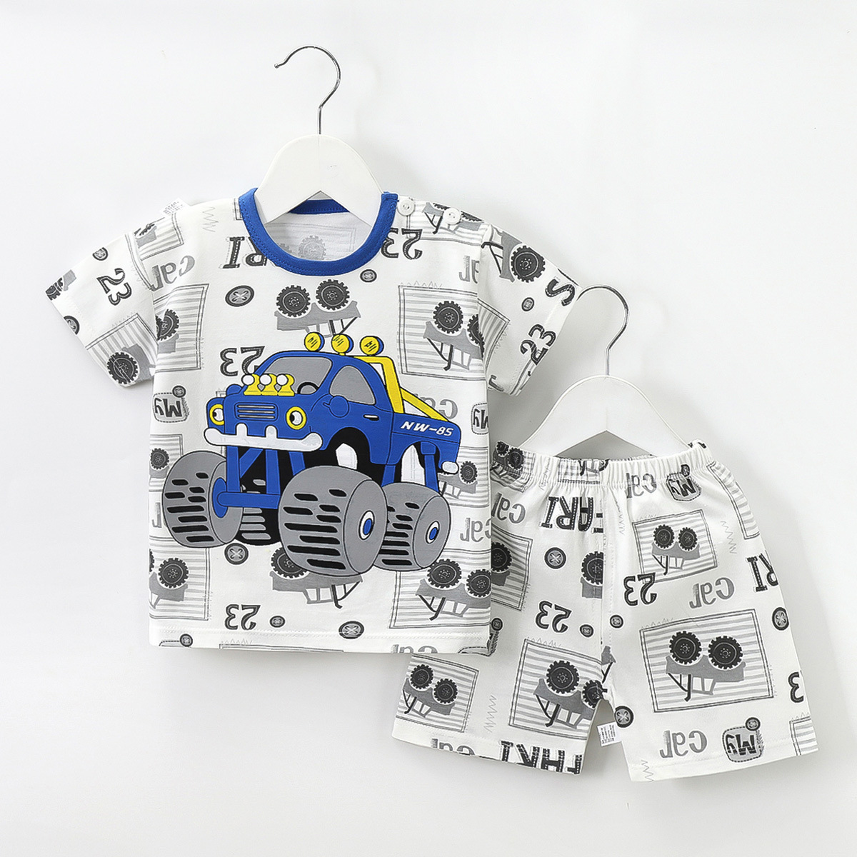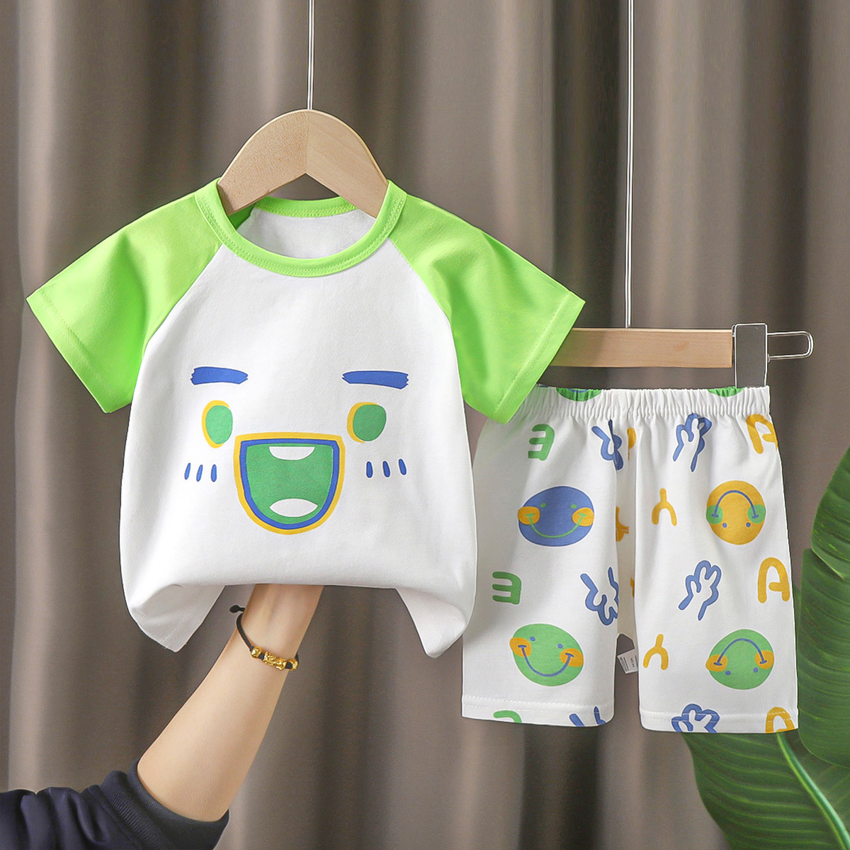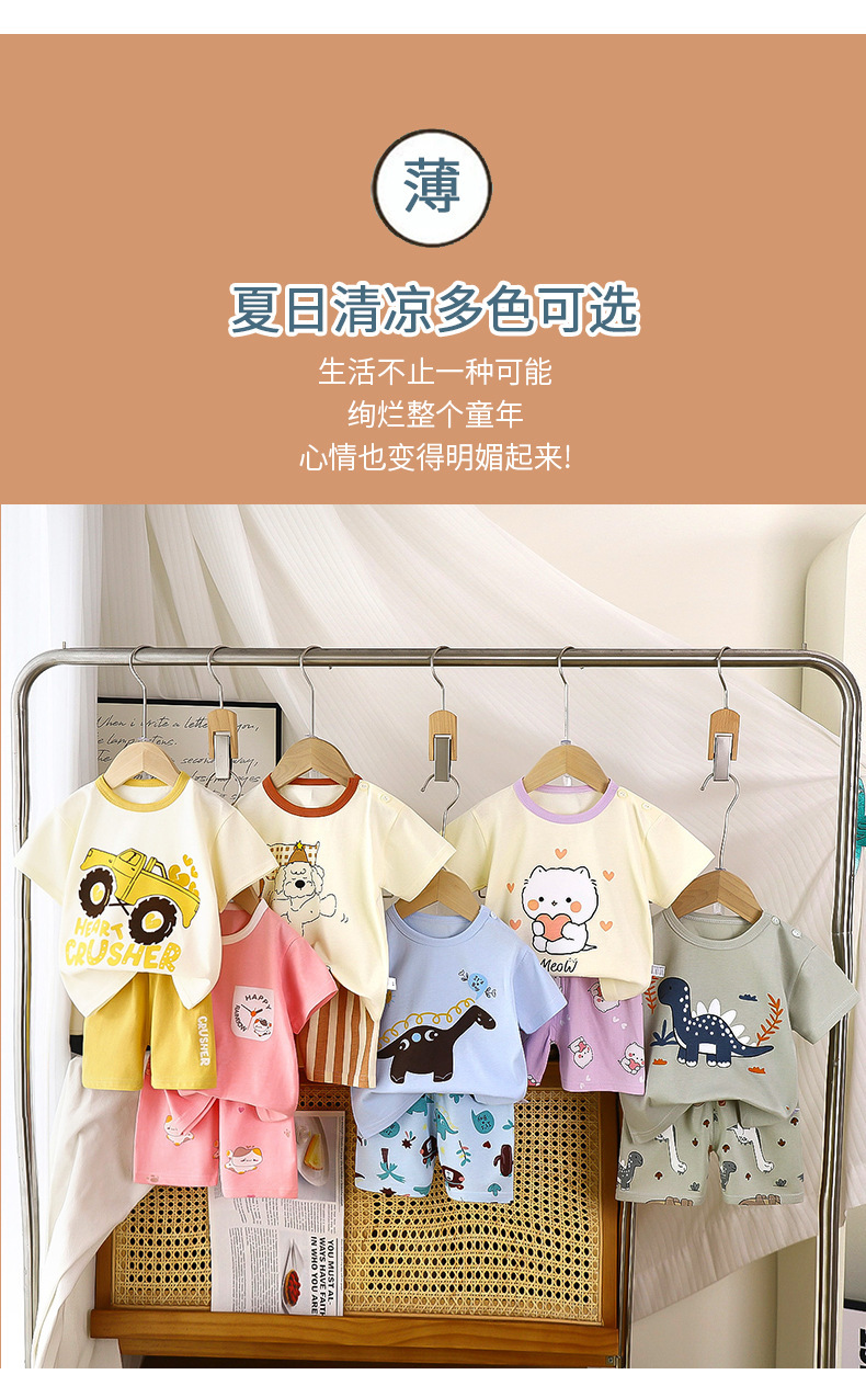 2025 새로운 어린이 반팔 세트 면화 여름 아기 티셔츠 반바지 세트 여름 얇은 아동복 도매스토어 가기