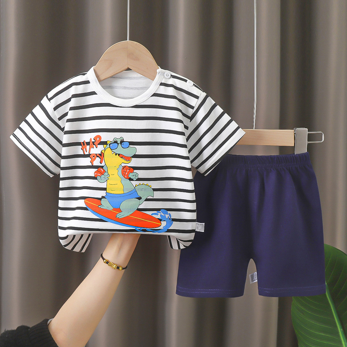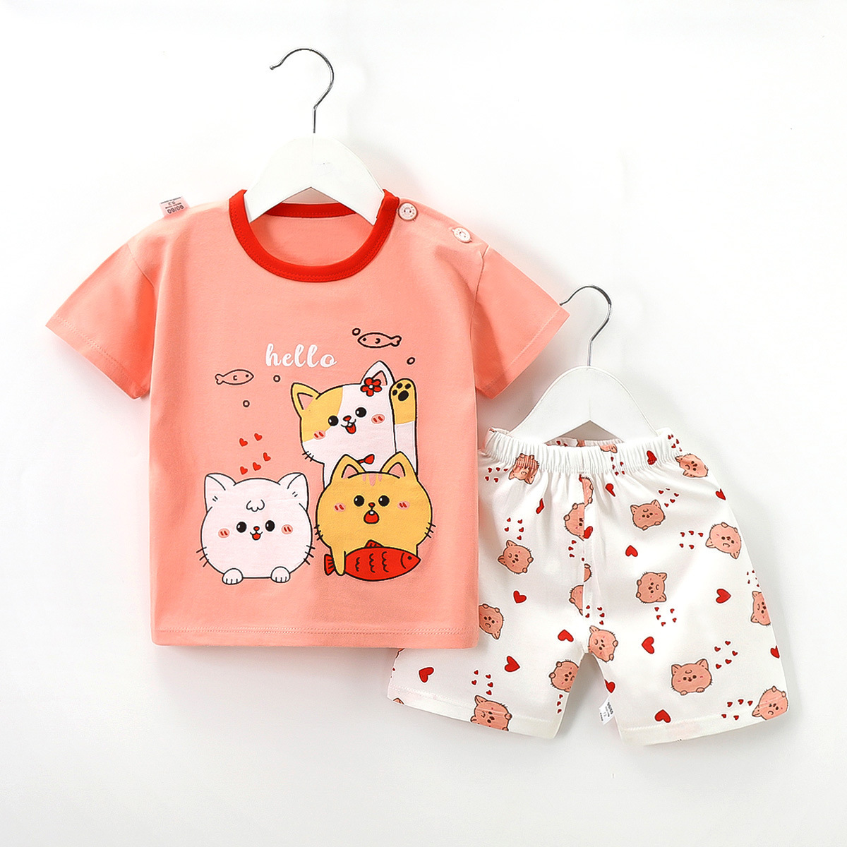 2025 새로운 어린이 반팔 세트 면화 여름 아기 티셔츠 반바지 세트 여름 얇은 아동복 도매