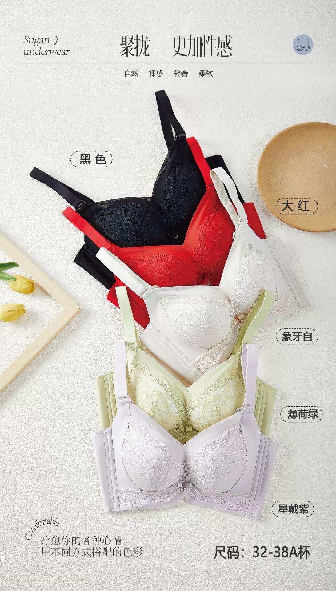 8438 두꺼운 작은 가슴 컵 속옷 MM 비 자기 속옷 Rimless 슈퍼 폴리 레이스 섹시한 여자 브래지어