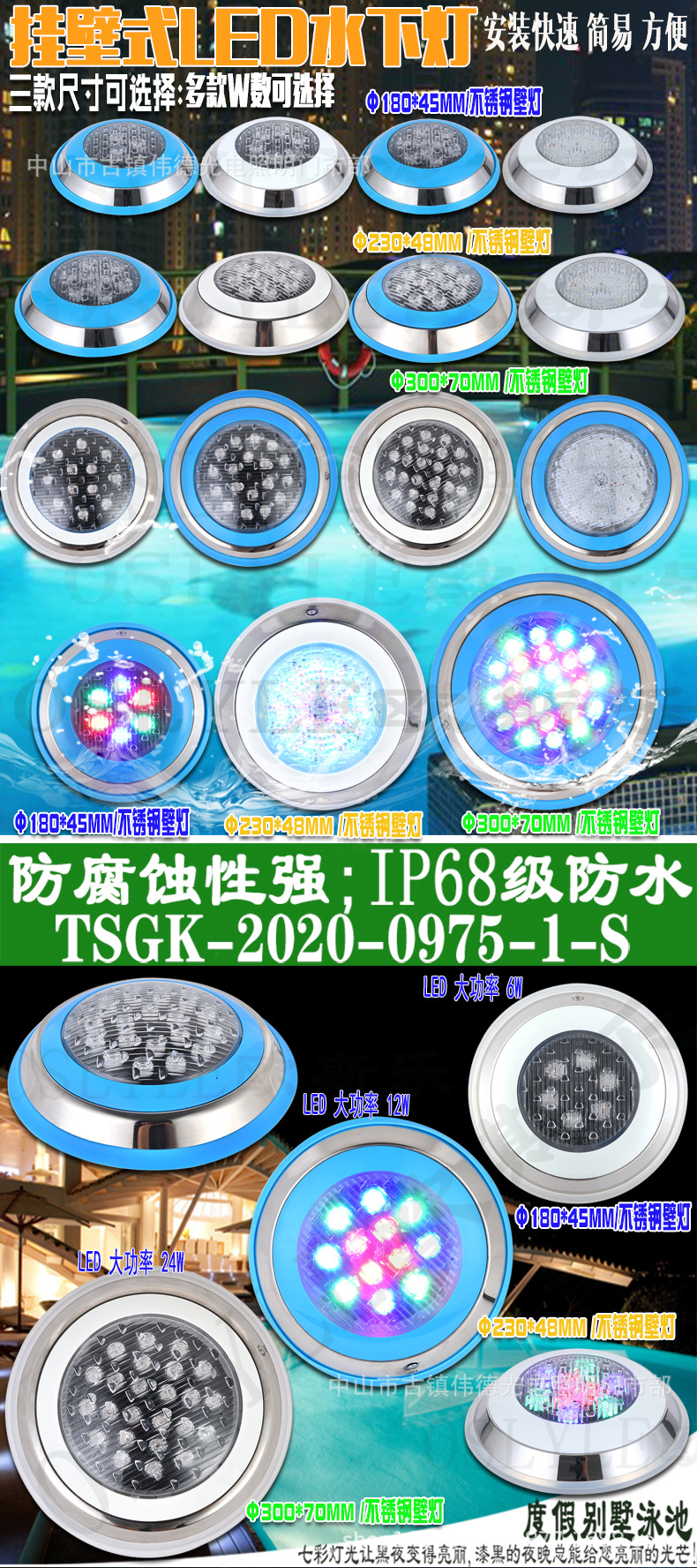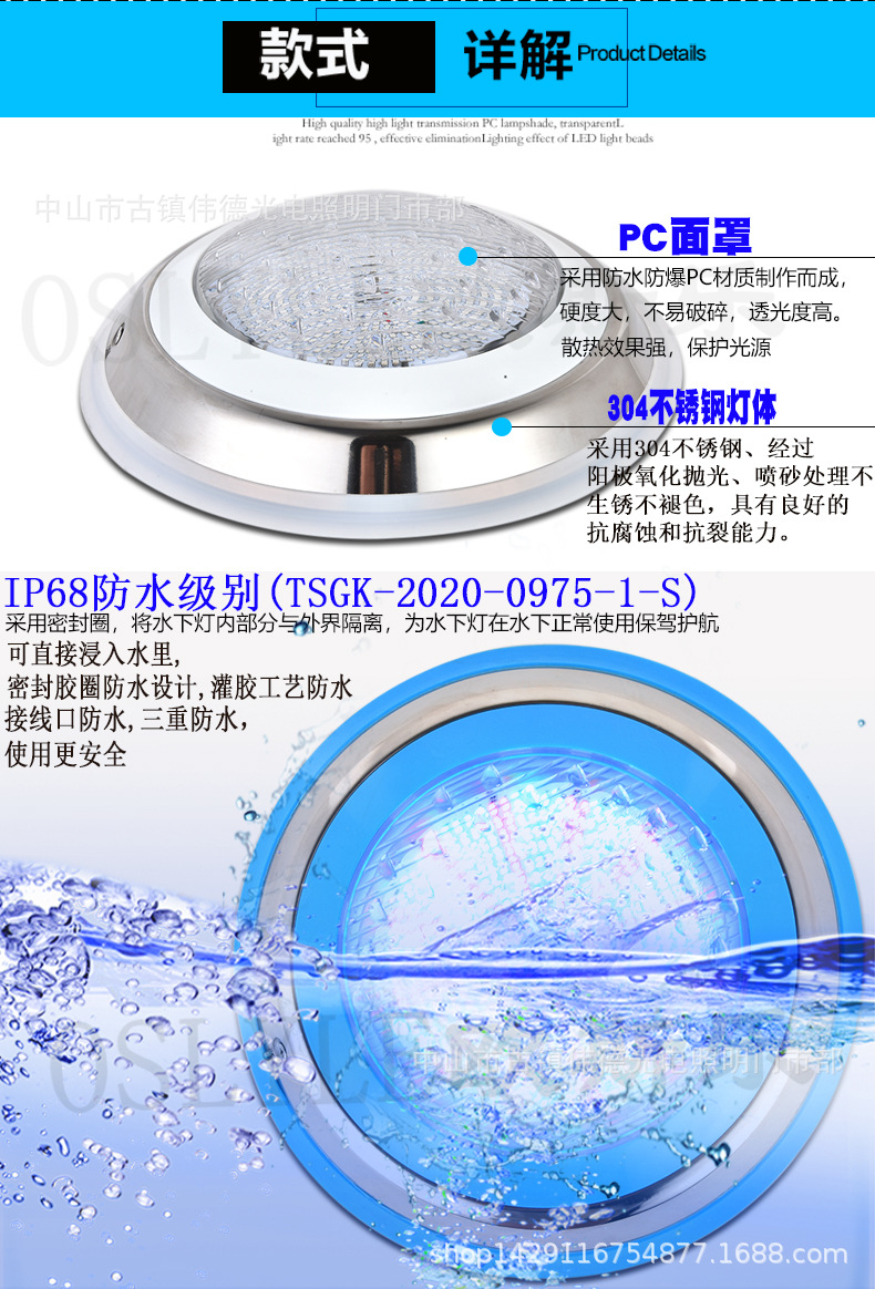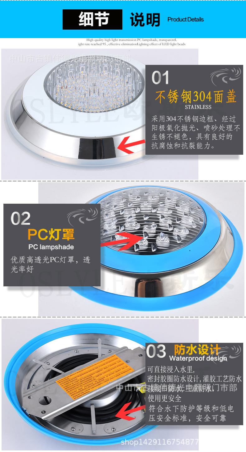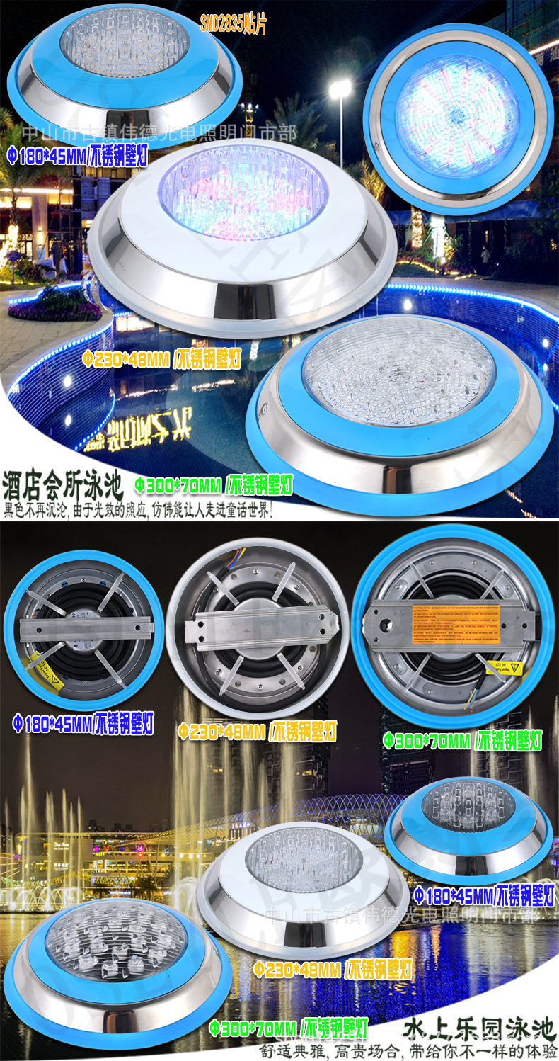 LED 수영장 조명 벽걸이 조명 수영장 수중 벽걸이 다이빙 조명 다채로운 색상 변화 조명 스테인리스 블루 엣지 수경 조명스토어 가기