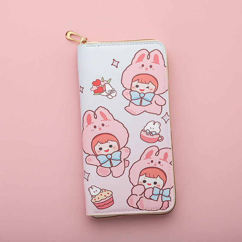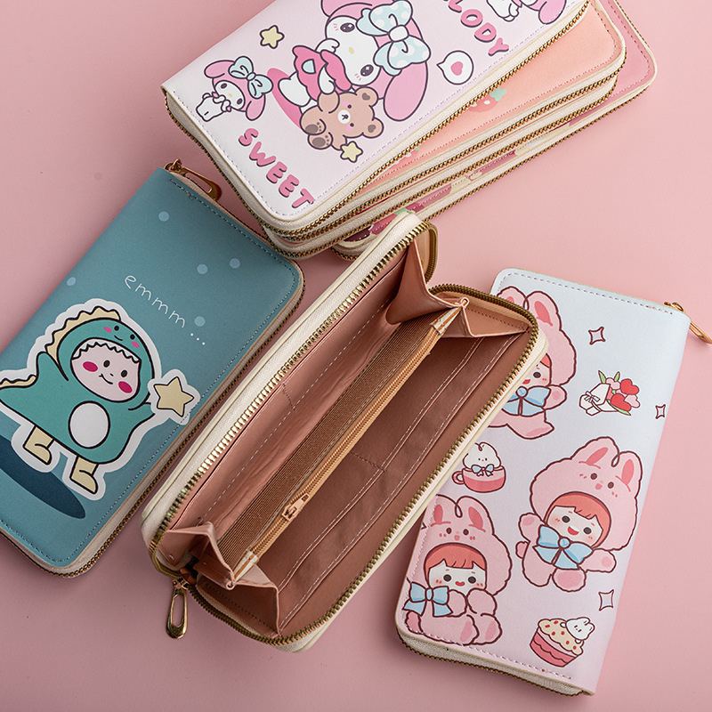 긴 지갑 여성 학생 만화 새로운 대용량 휴대 전화 지갑 지퍼 카드 홀더 클러치 가방 저장 가방 국경스토어 가기