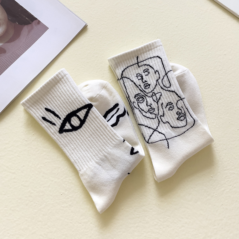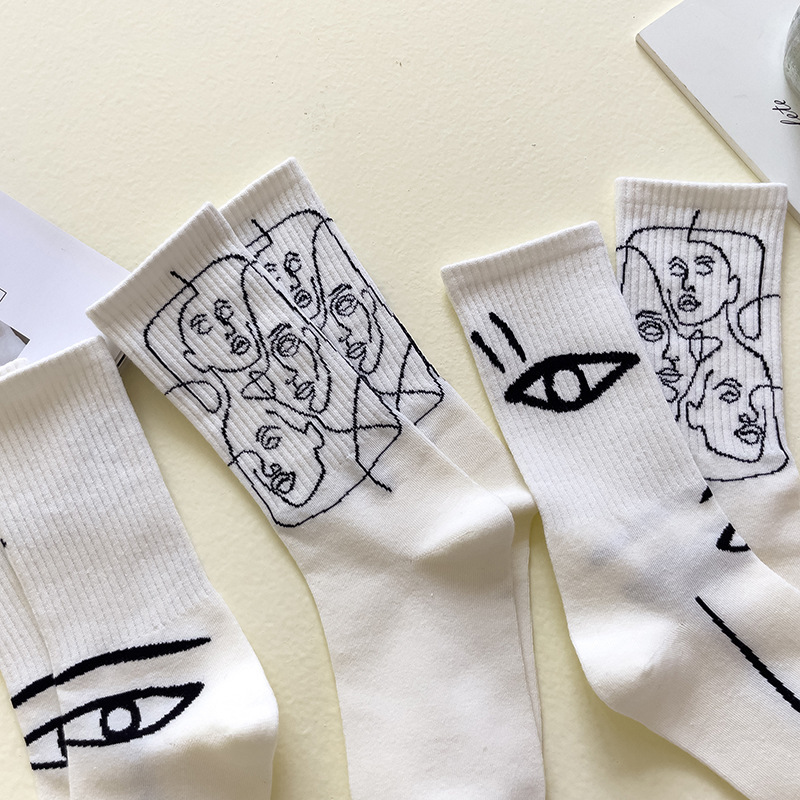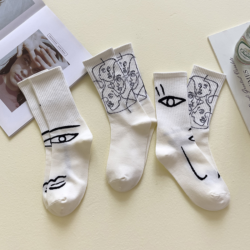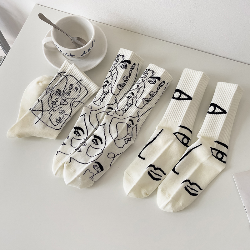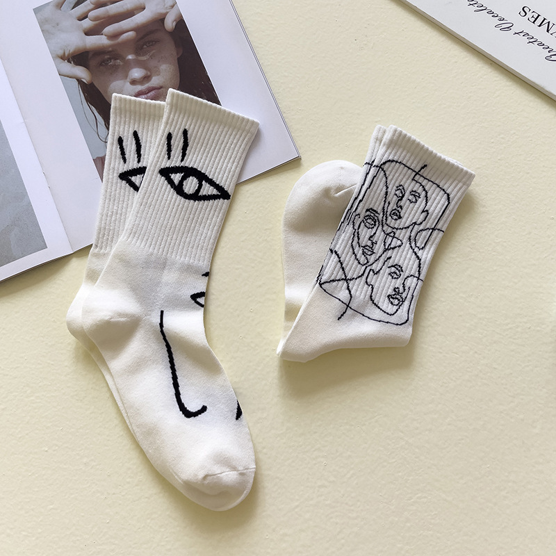 뼈없는 봉합 추상 라인 페인팅 개인화 된 창조적 인 남성과 여성의 튜브 양말 유럽과 미국의 거리 트렌드 스포츠면 양말스토어 가기