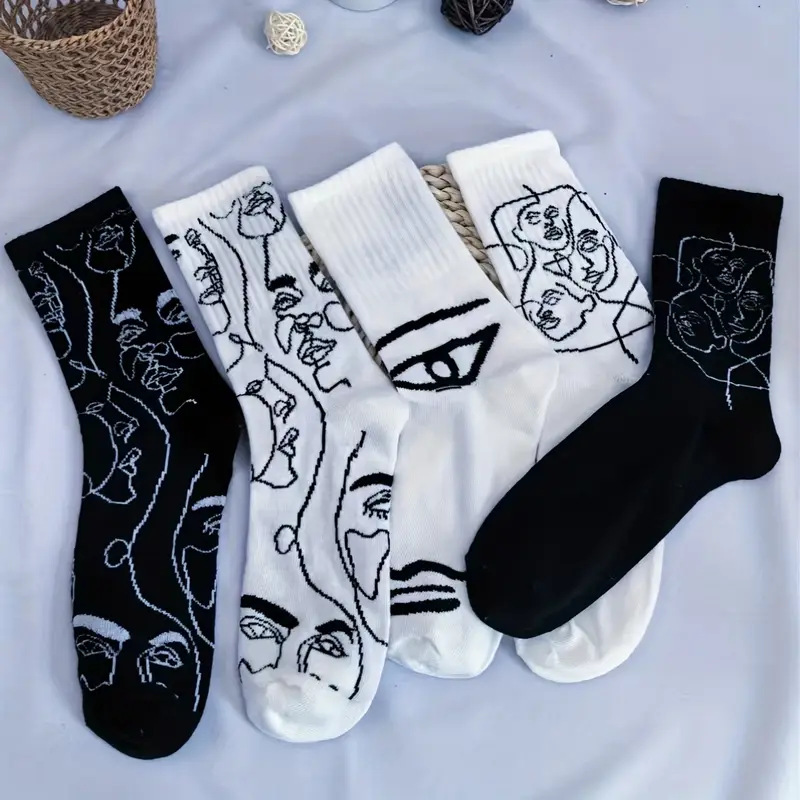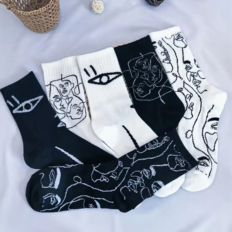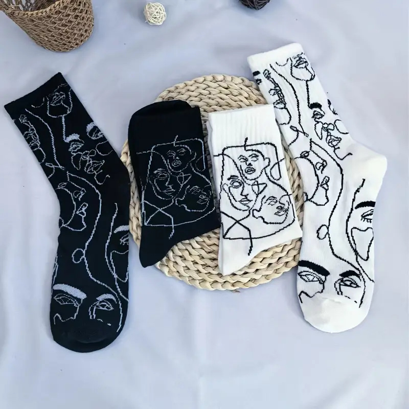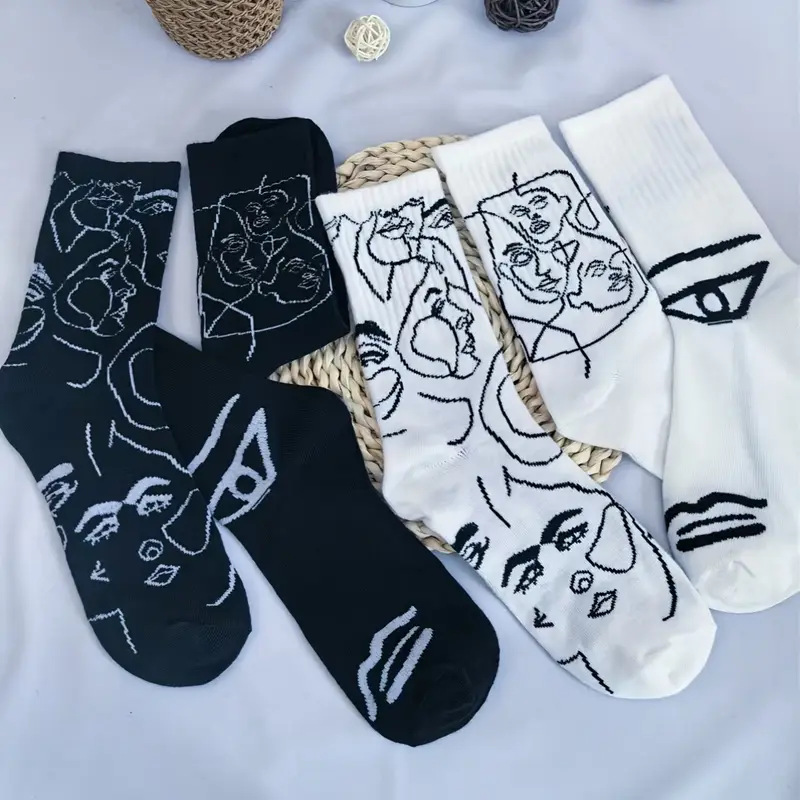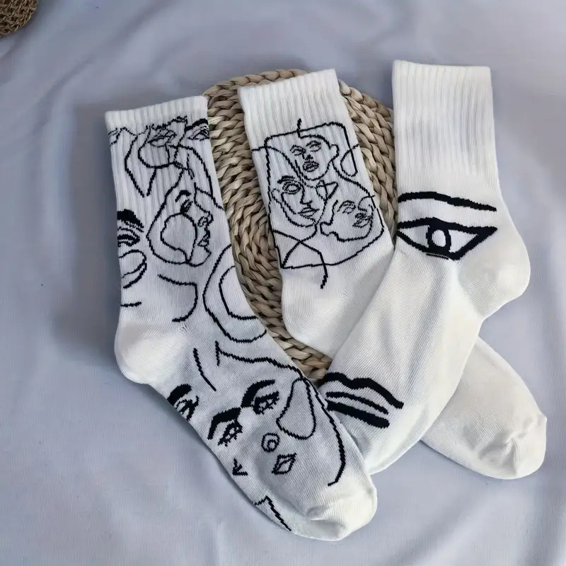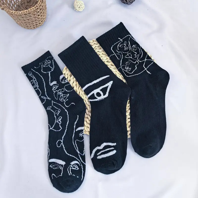 뼈없는 봉합 추상 라인 페인팅 개인화 된 창조적 인 남성과 여성의 튜브 양말 유럽과 미국의 거리 트렌드 스포츠면 양말스토어 가기