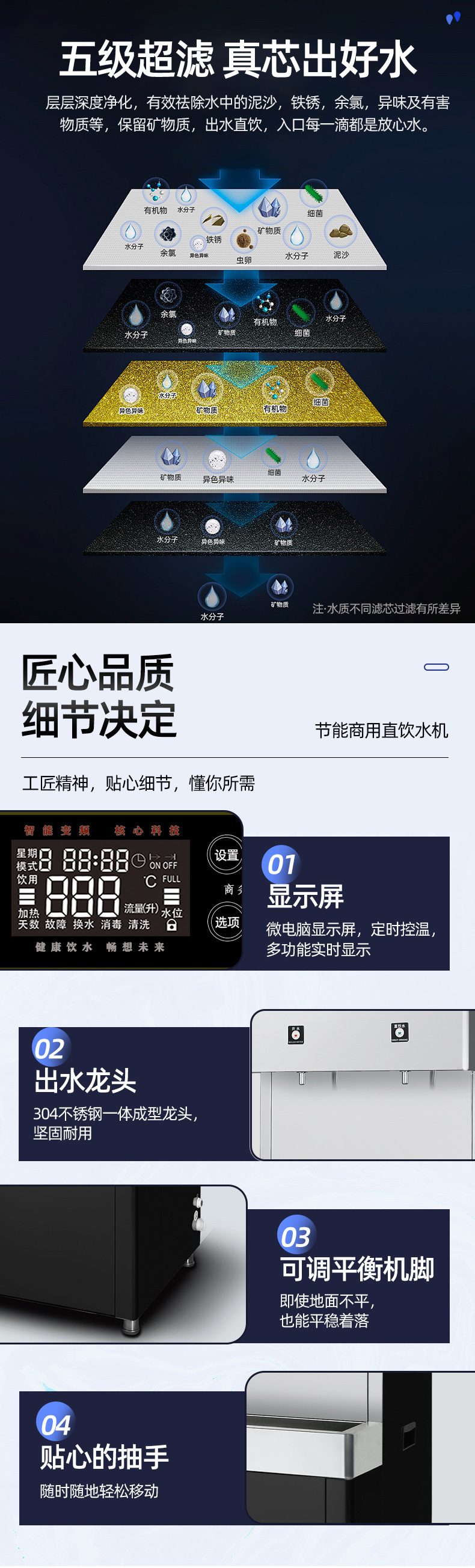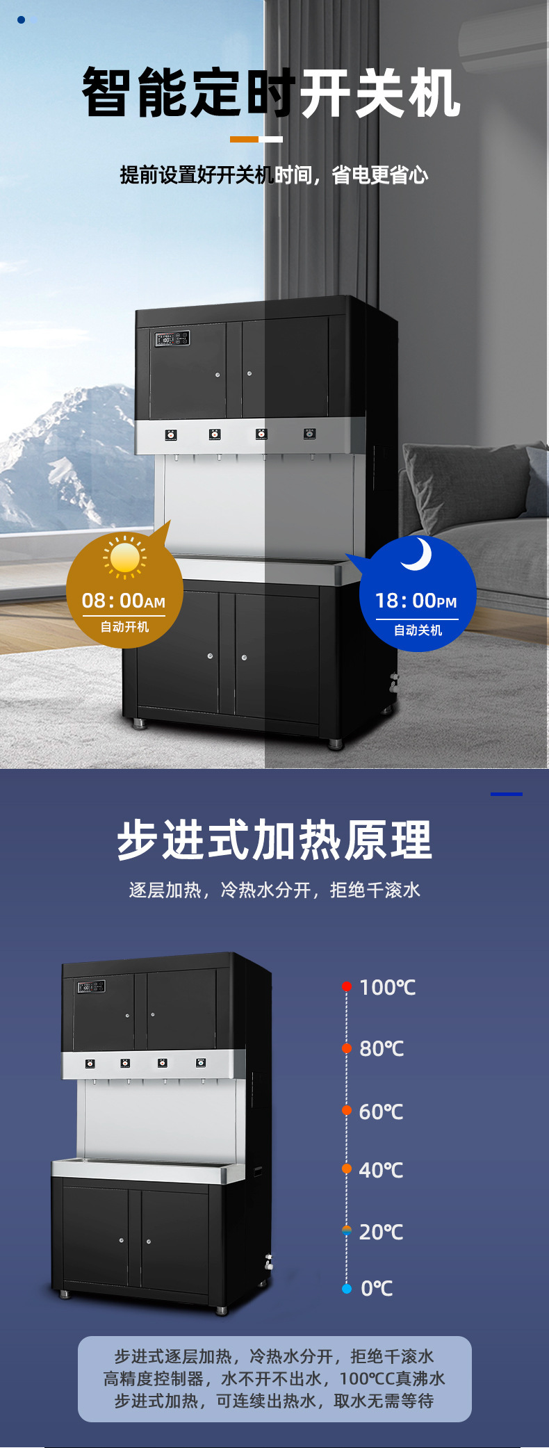 步进式:出水方式:全开或者开水+常温水(直饮水,凉水)