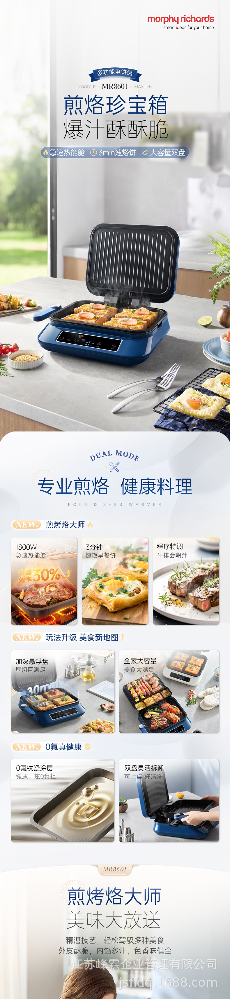 모페이 전기 케이크 팬 가정용 아침 식사 기계 MR8601 전기 케이크 실속 양면 가열 빵 토스트 튀김 기계 팬케이크 팬