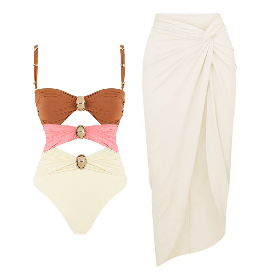 2025 유럽과 미국의 새로운 도착 수영복 세트 여자 골드 도금 라운드 컬러 홀로우 크로스 보더 라자 다 섹시 비키니