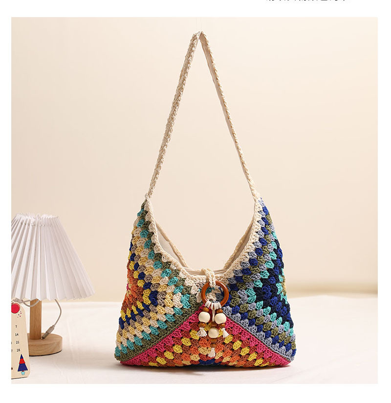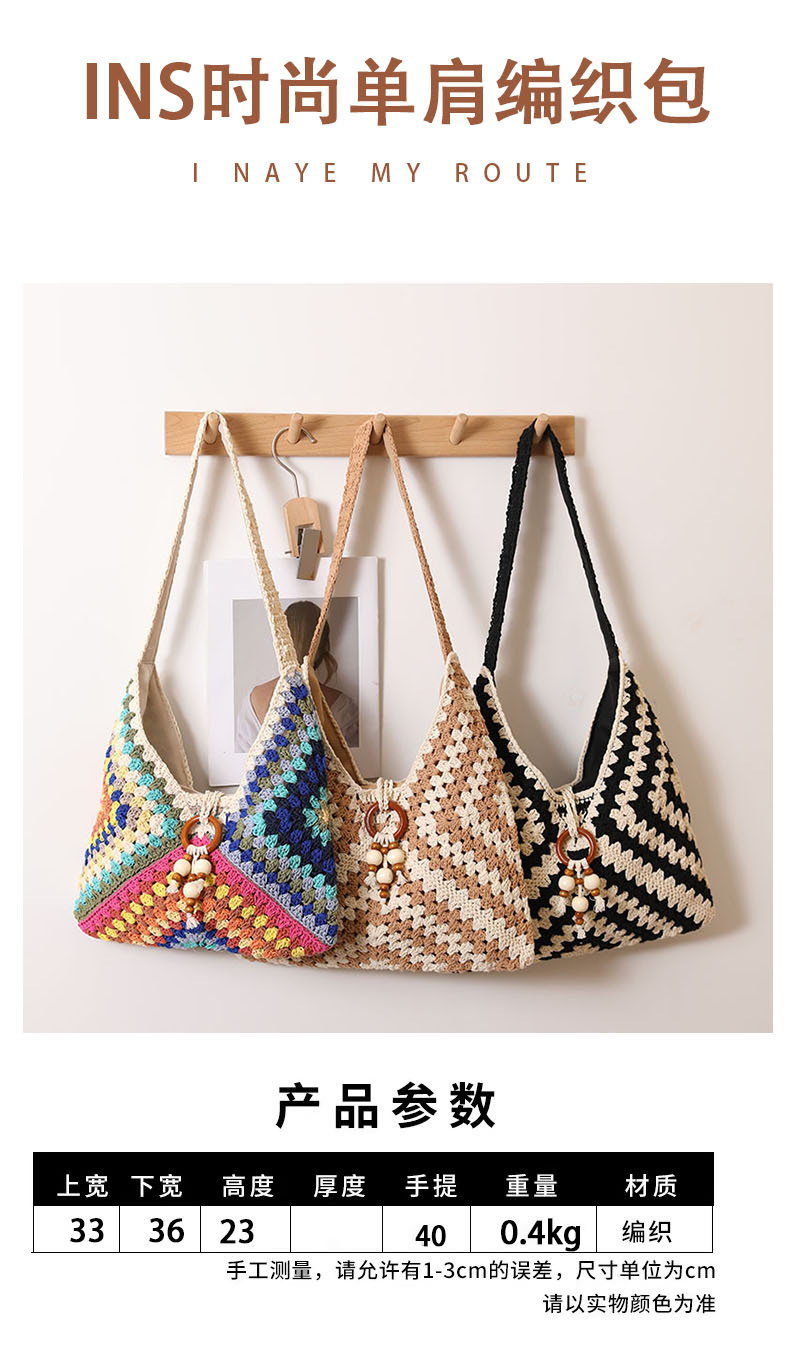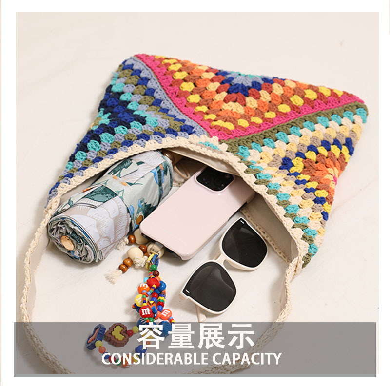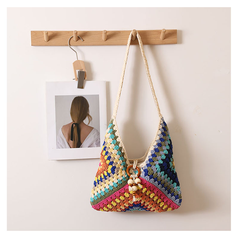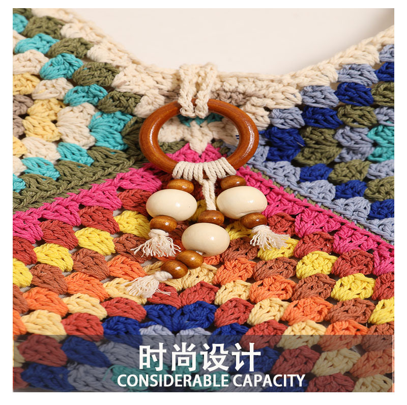민족 스타일 어깨 코튼 짠 가방 새로운 스타일 다채로운 할머니 격자 밀짚 짠 가방 휴일 스타일 비치 백 올 매치 여성용 가방