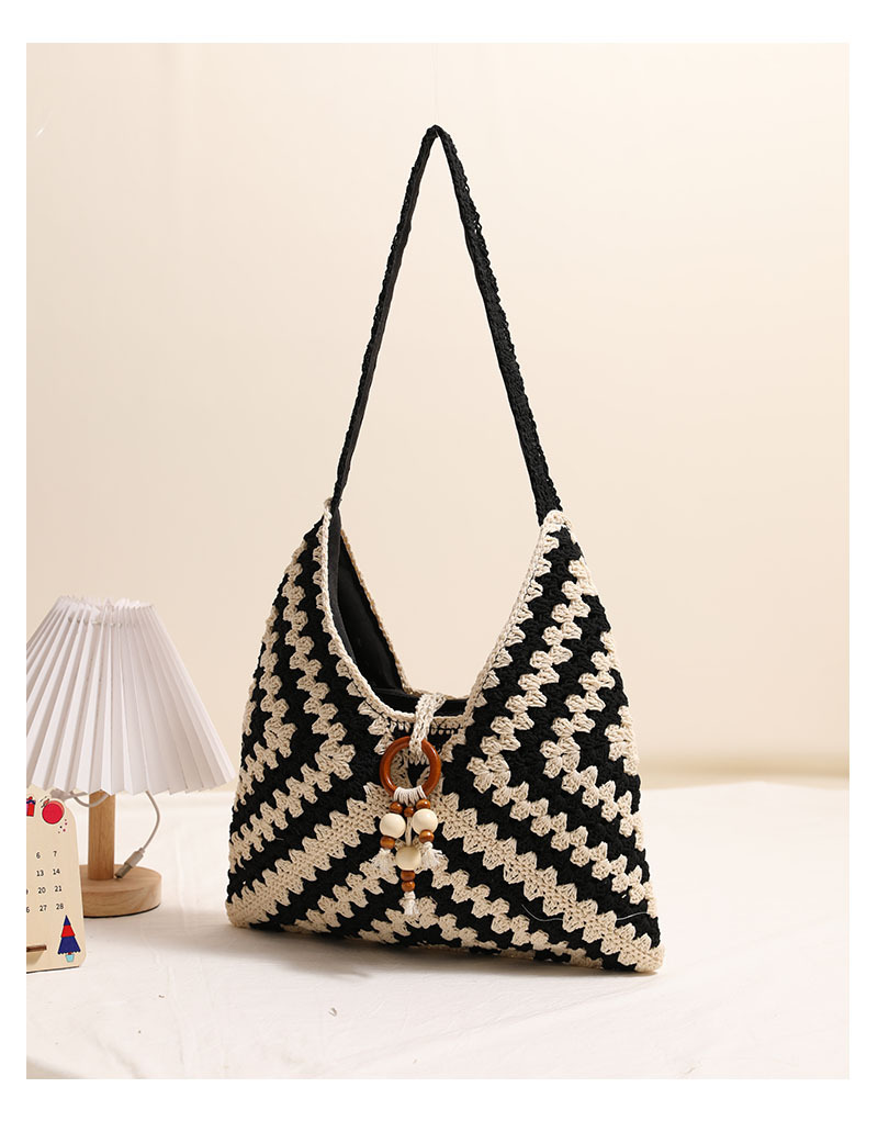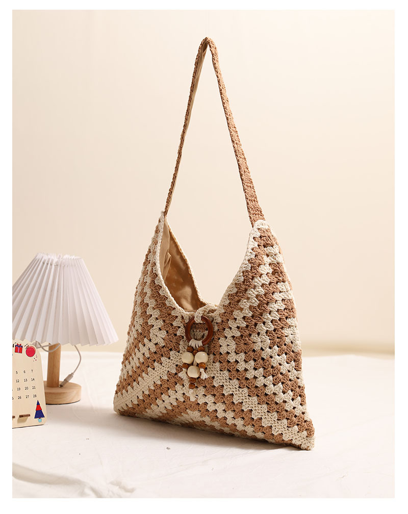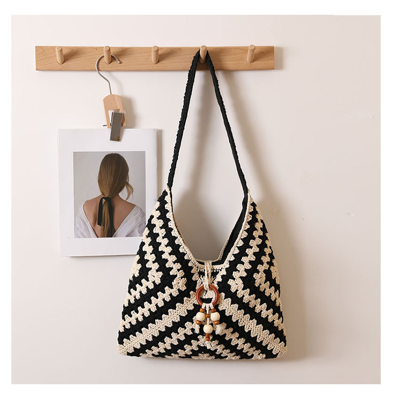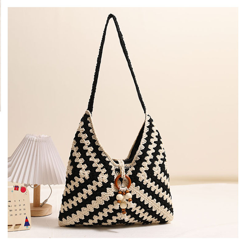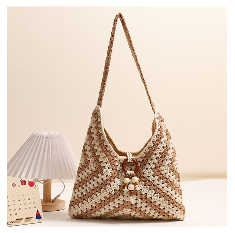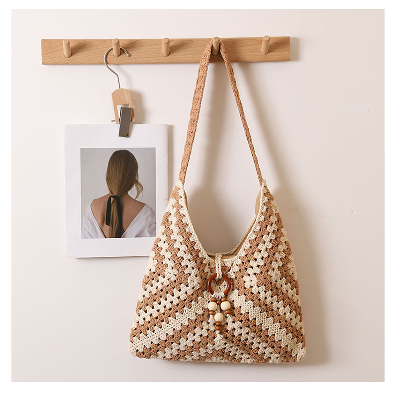 민족 스타일 어깨 코튼 짠 가방 새로운 스타일 다채로운 할머니 격자 밀짚 짠 가방 휴일 스타일 비치 백 올 매치 여성용 가방