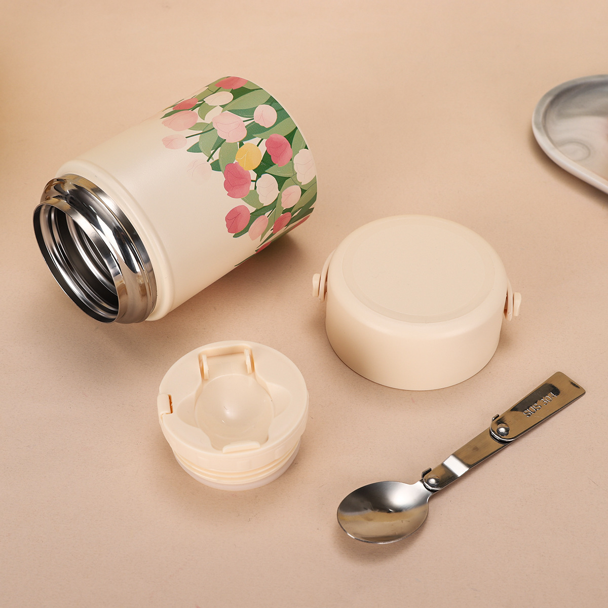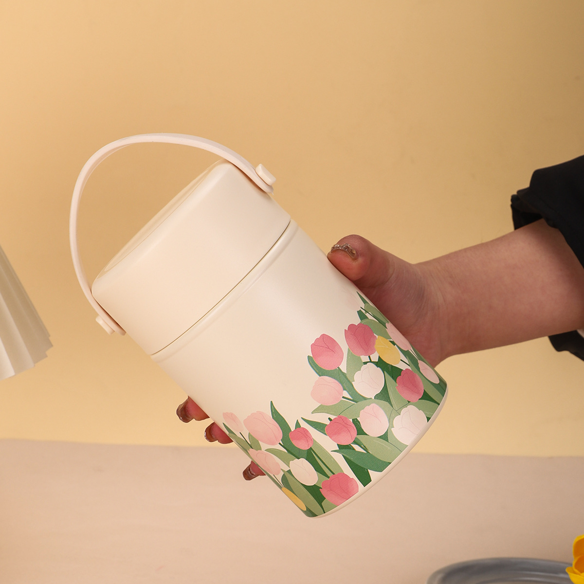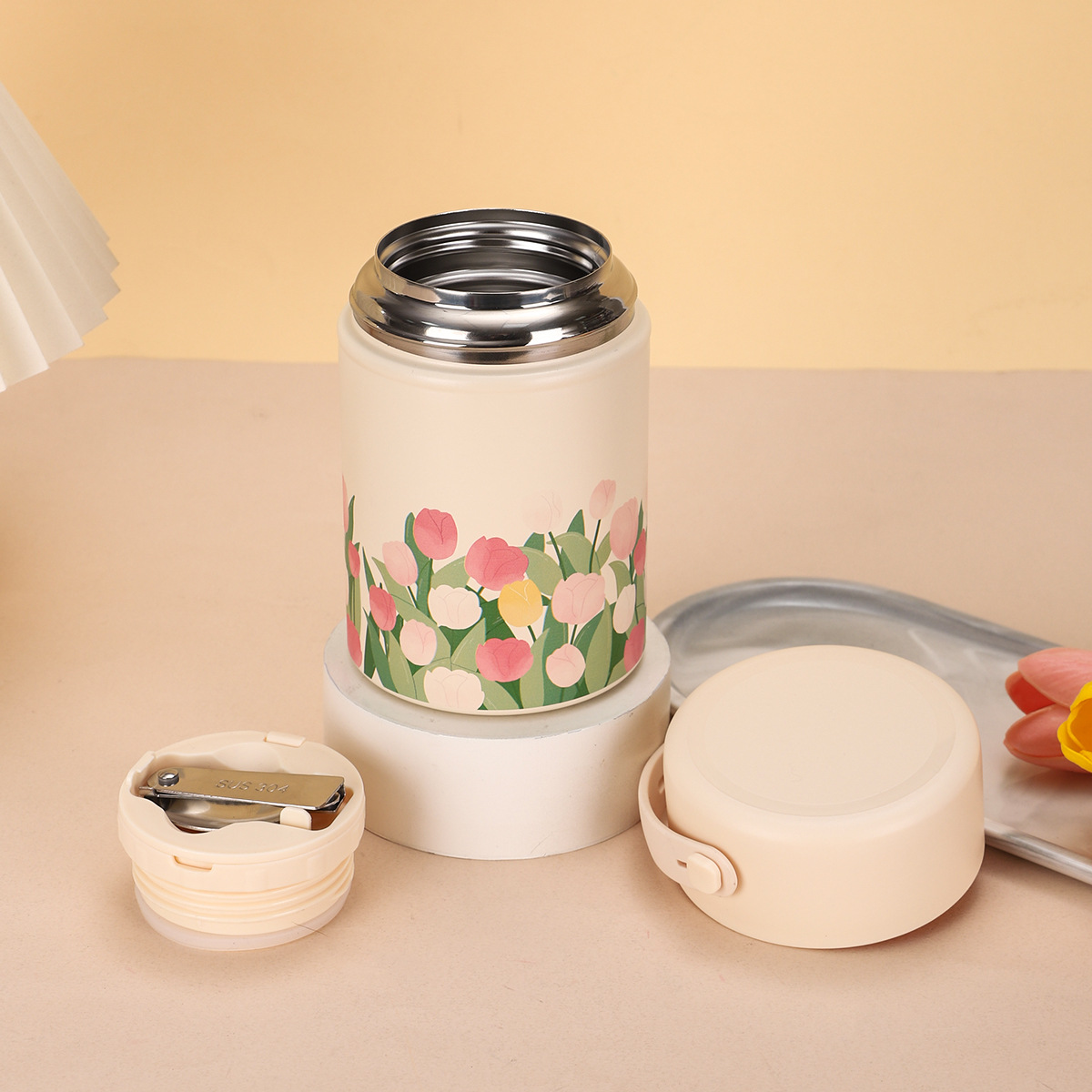 316 스테인레스 스틸 보온병 컵 가정용 대용량 물 컵 스푼 새로운 높은 컬러 값 튤립 핸드 헬드 브레이드 비커스토어 가기
