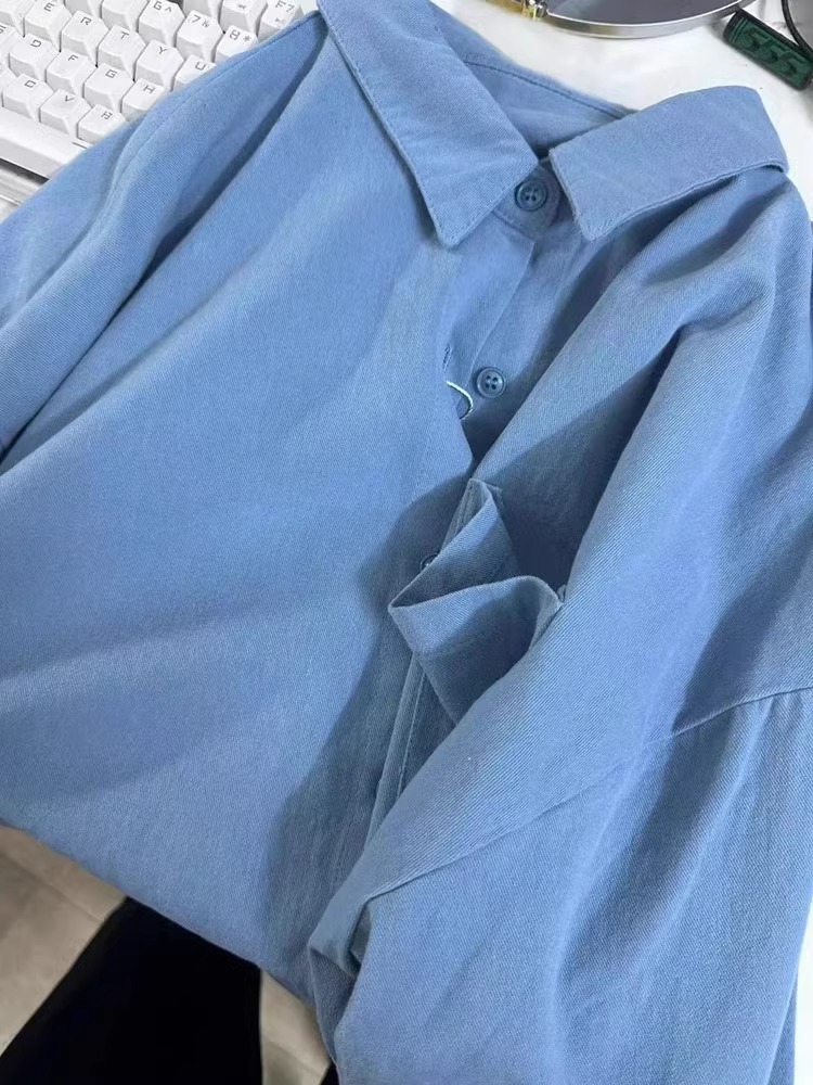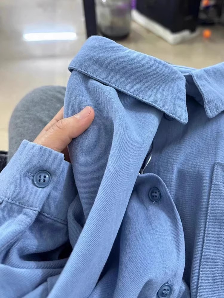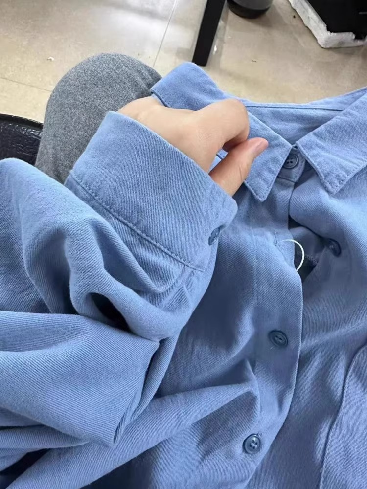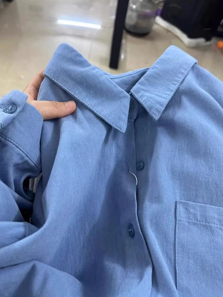 자이언트 화이트 퓨어 코튼 블루 셔츠 봄 가을 겨울 내베이스 스택 셔츠 긴 소매 최고 여성의 단색 얇은 재킷스토어 가기