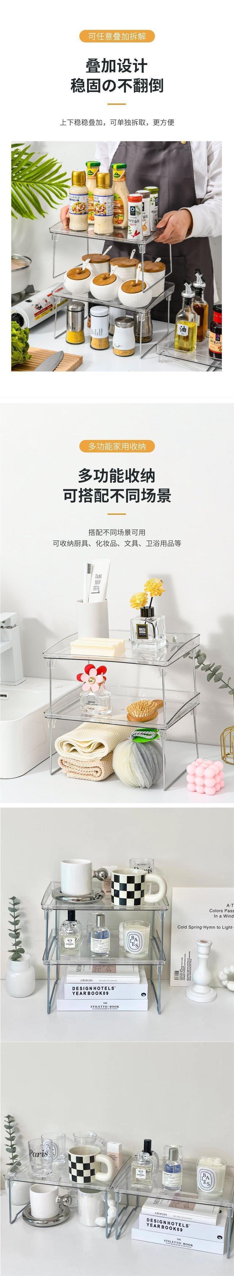 투명 더블 레이어 데스크탑 스토리지 랙 아크릴 컵 홀더 접이식 주방 및 욕실 화장품 잡화 보관 랙