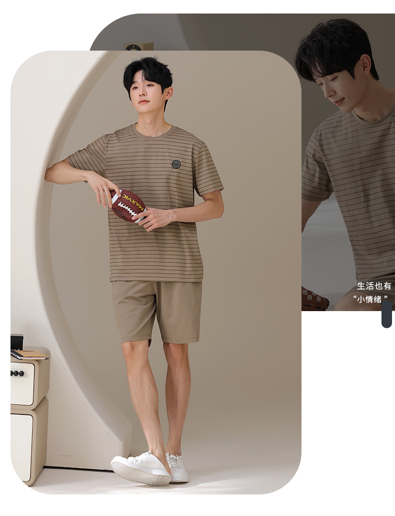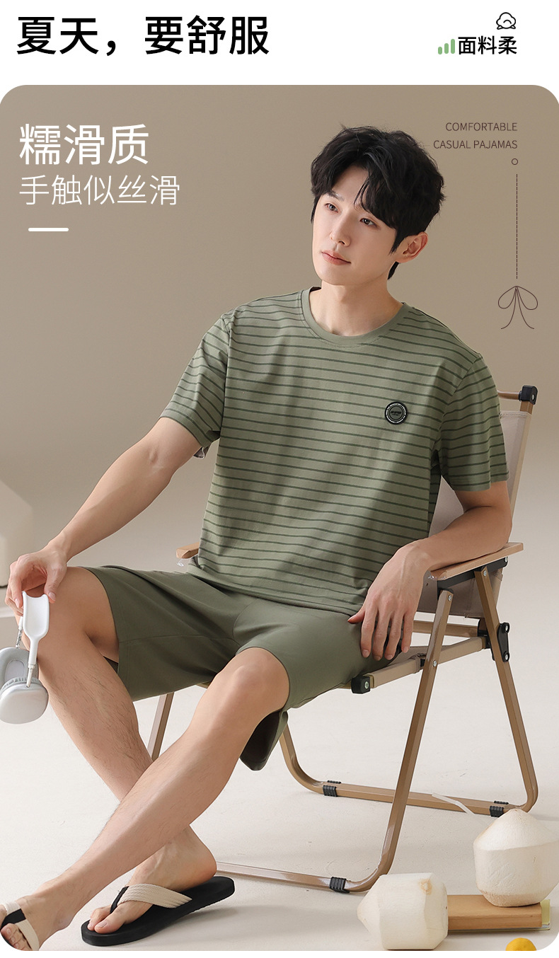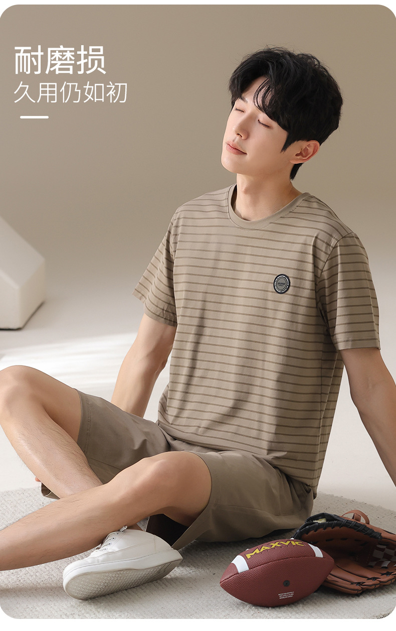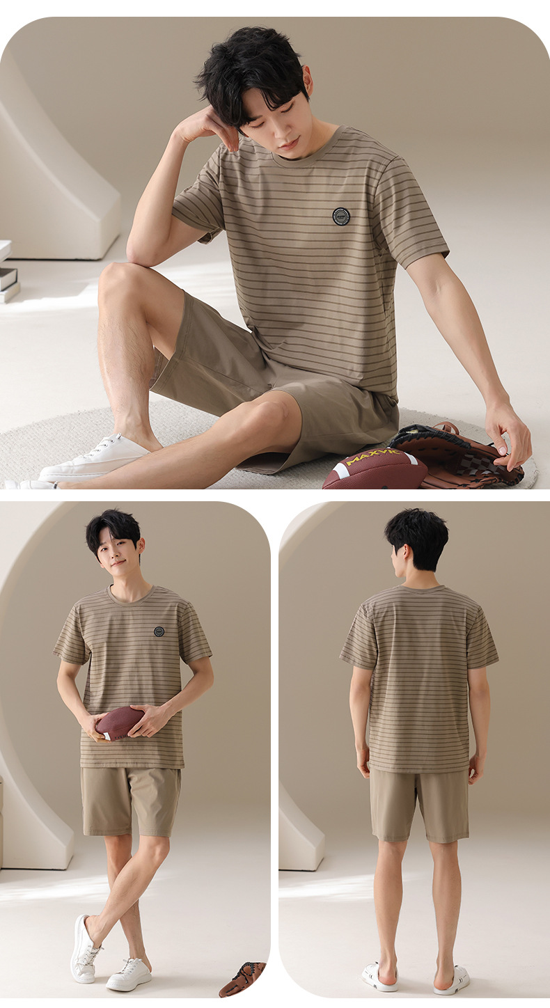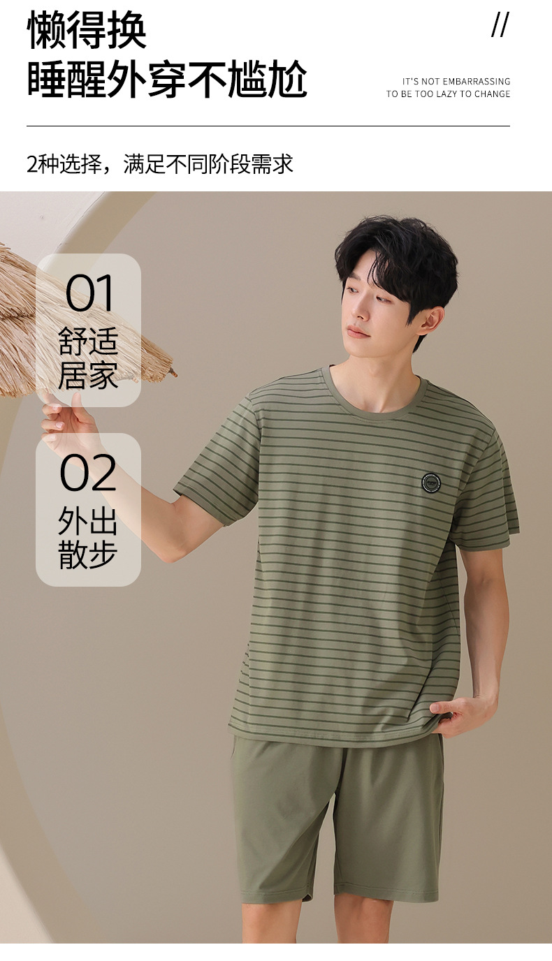 남성용 잠옷, 여름용 순면 반팔 얇은 스트라이프 슈트, 외부 착용 가능, 여름용 풀오버 홈웨어 슈트, 남성용스토어 가기