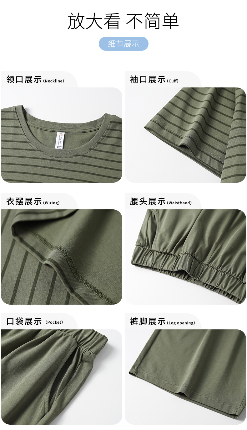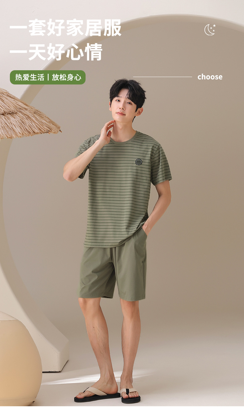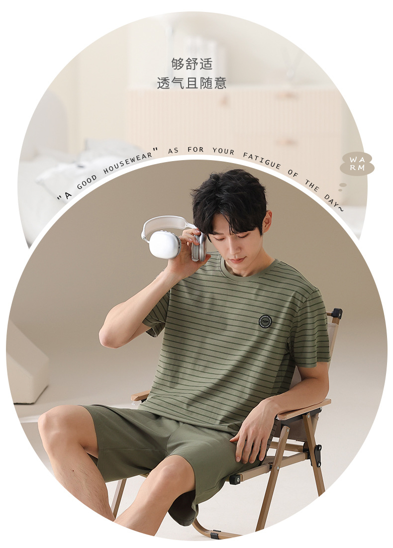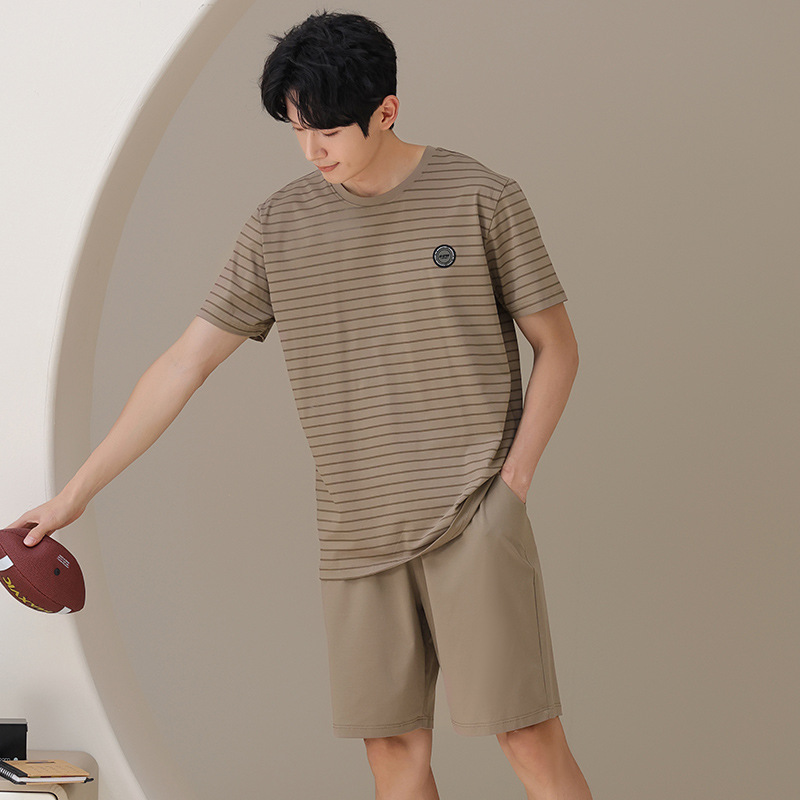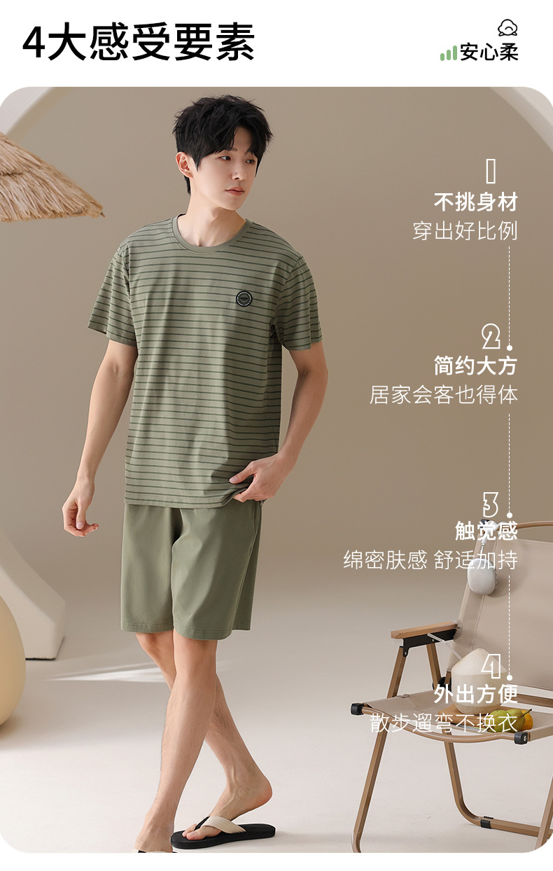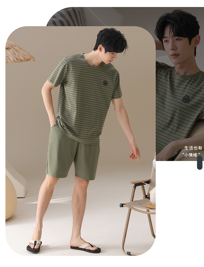 남성용 잠옷, 여름용 순면 반팔 얇은 스트라이프 슈트, 외부 착용 가능, 여름용 풀오버 홈웨어 슈트, 남성용스토어 가기