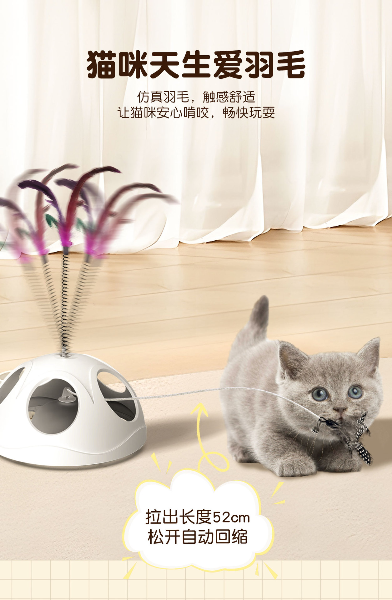 맞춤형 반려동물 용품 고양이 장난감 자동 수축식 끈 스프링 깃털 고양이 놀이봉 새끼 고양이용스토어 가기