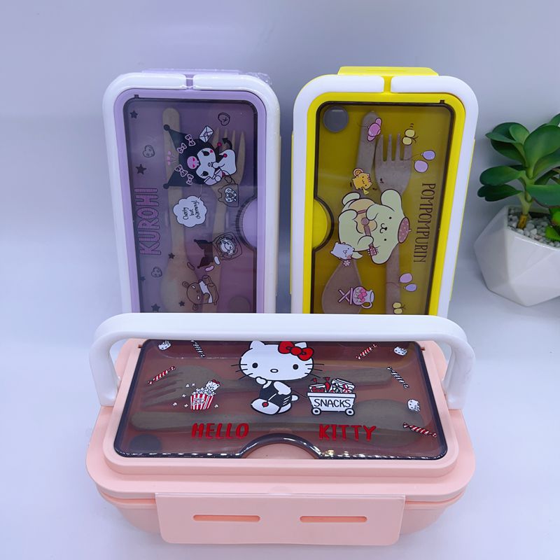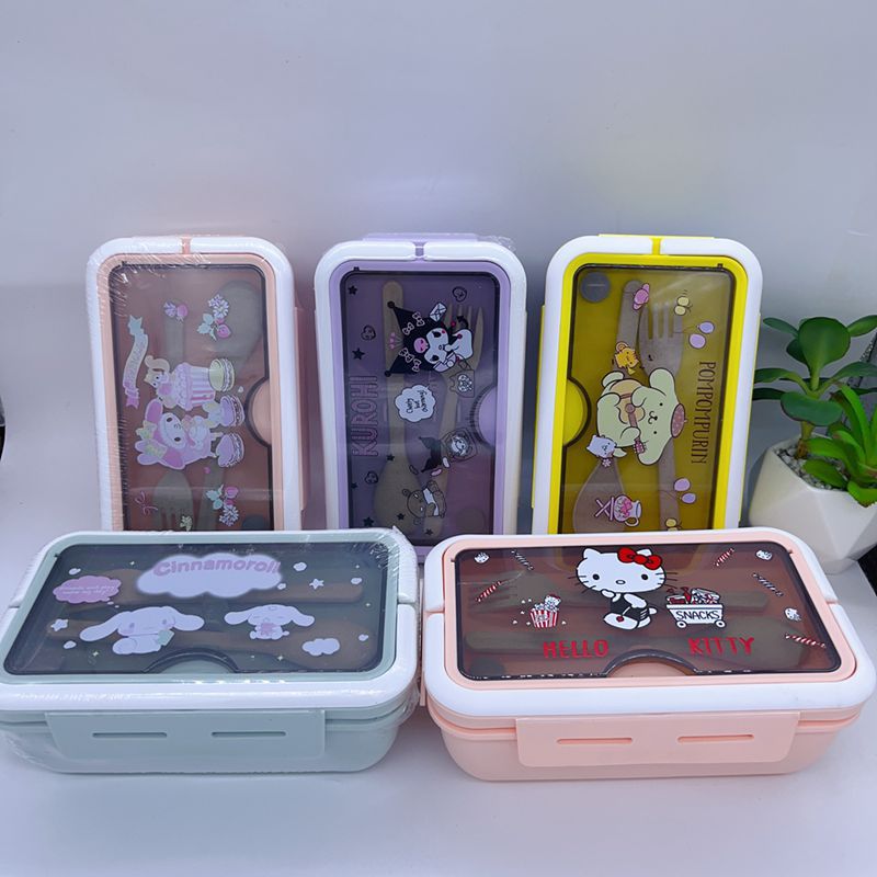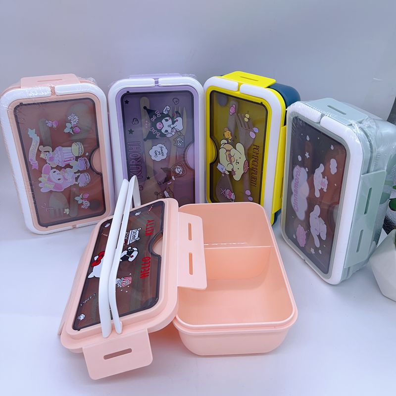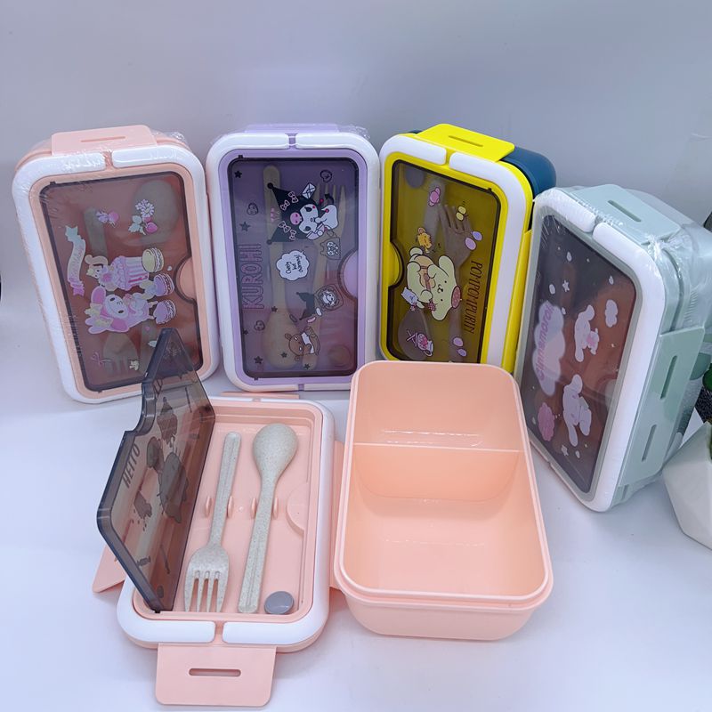 절묘한 만화 학생 휴대용 도시락 소녀의 마음 귀여운 도시락 두 배 구획 점심 일본 식기 휴대용 도시락