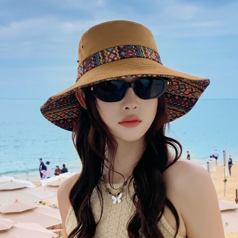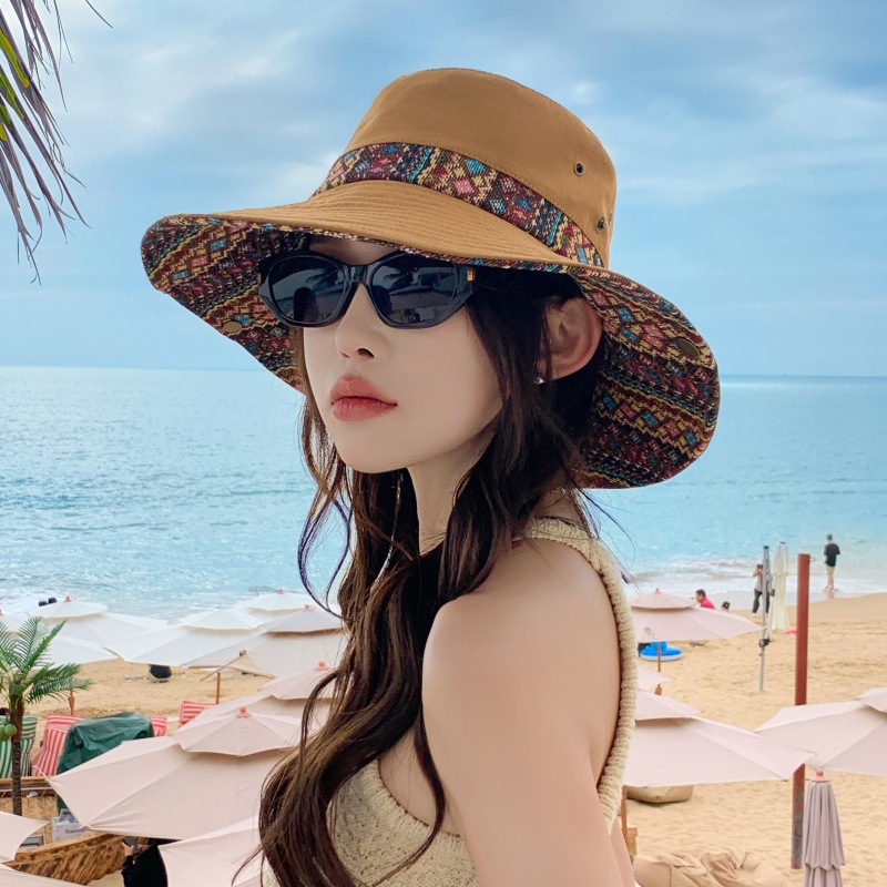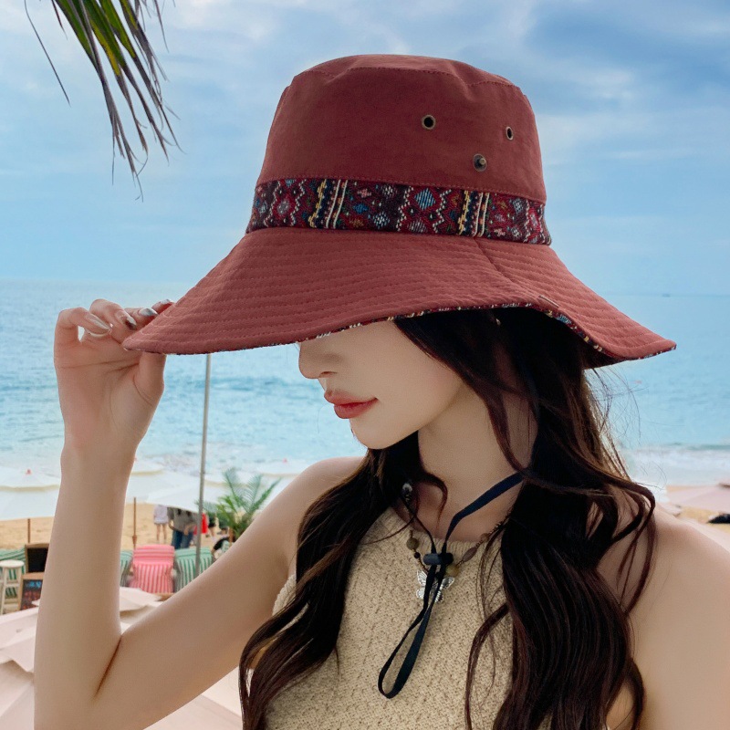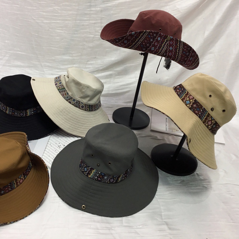 야외 하이킹 등산 모자 여성 어부 모자 큰 머리 와이 태양 모자 남성 민족 스타일 분지 모자 캐주얼 여행 태양 모자