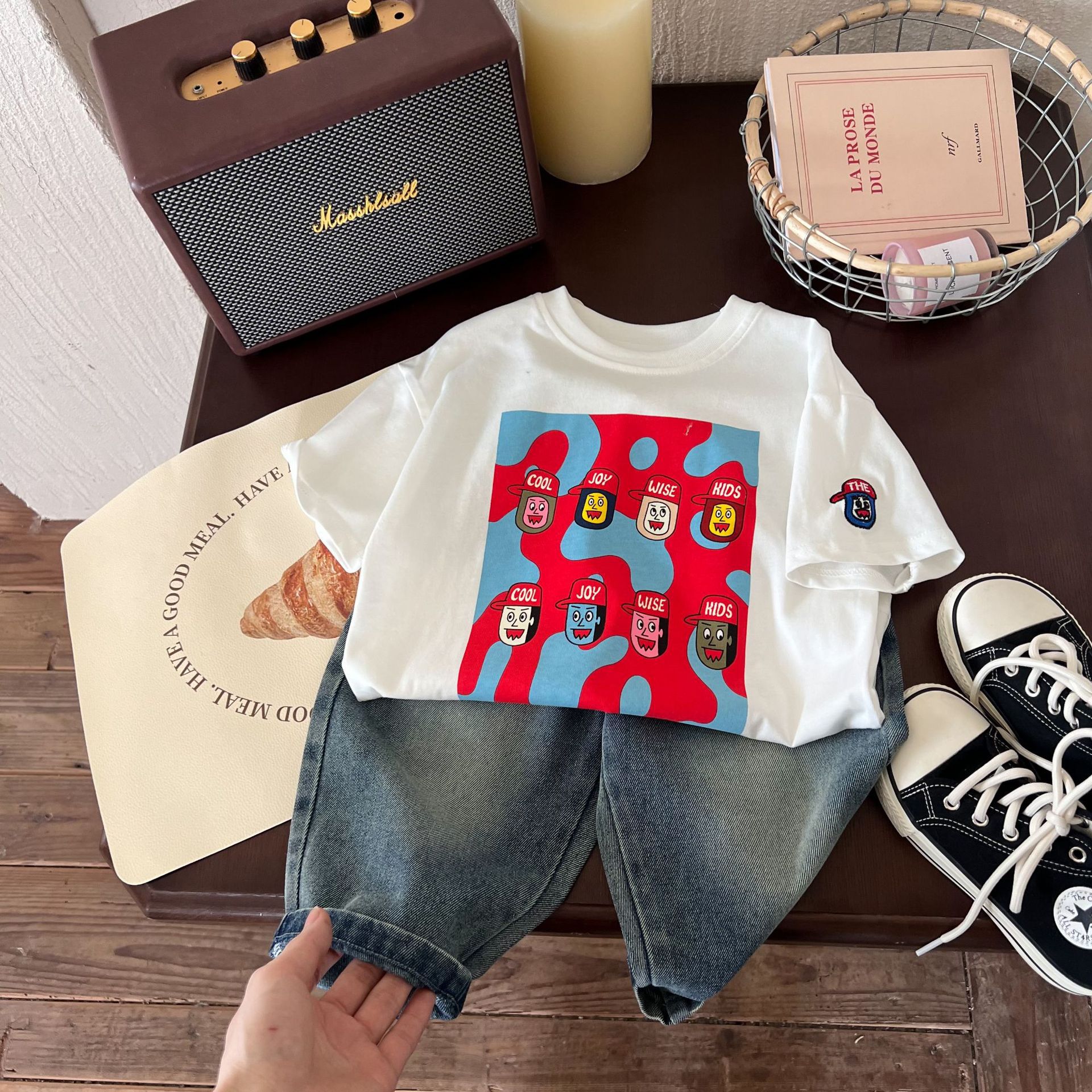 아동복 반팔 2025 여름 새 소년 티셔츠 만화 인쇄 유행 어린이 미국식 올 매치 반팔 T스토어 가기