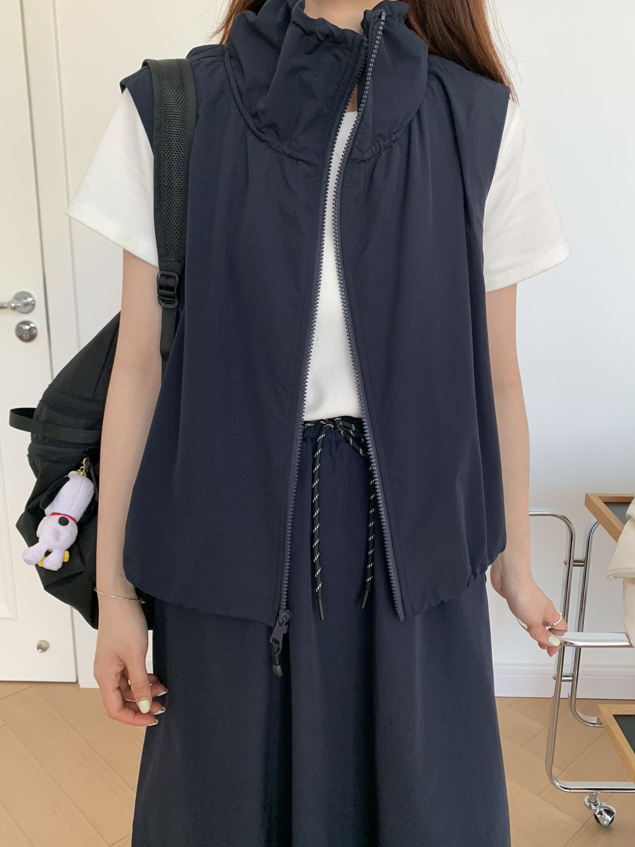 수직 칼라 툴링 봄 새로운 스타일 지퍼 조끼 여자 2025 한국 스타일 느슨한 머리 그림 탑
