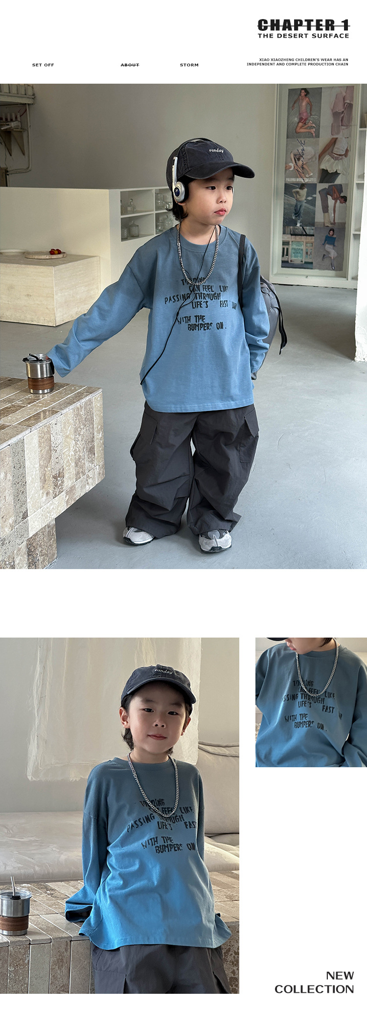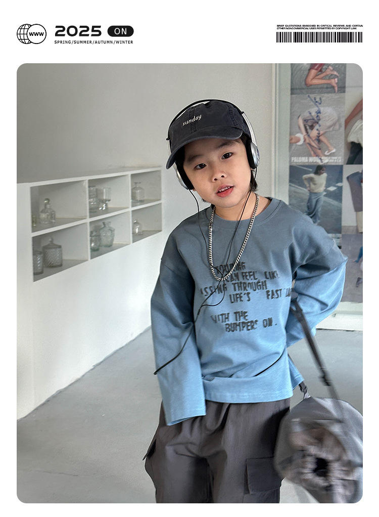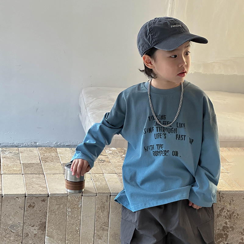 지리 아동복 남아 티셔츠 2025 가을 신상 남아 한국 스타일 라운드넥 상의 큰 아이들 루즈핏 봄 가을 옷스토어 가기