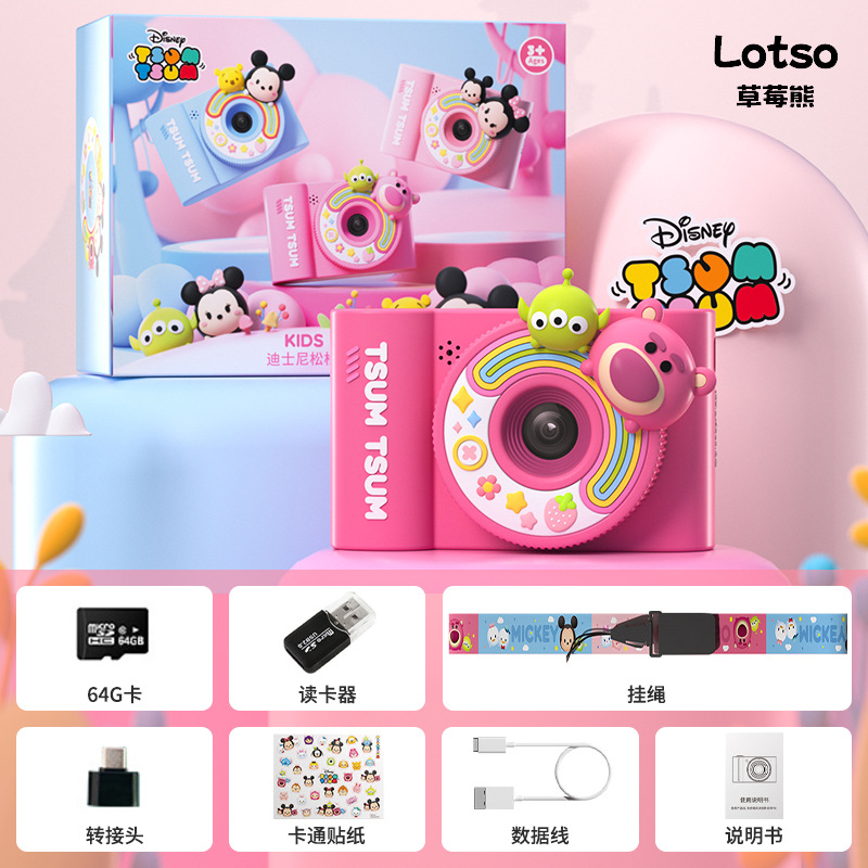 • 디즈니 딸기곰 [64G 패키지: 카메라 + 64G 카드 + 카드 리더기 + 어댑터 + 끈 + 만화 스티커 + 데이터 케이블 + 설명서]