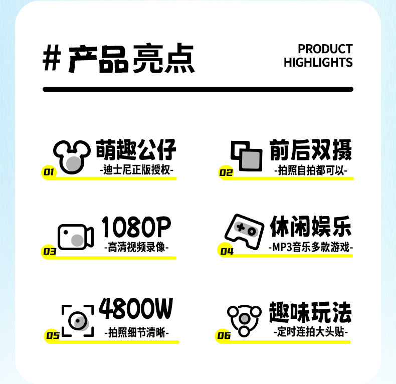 • 디즈니 미키 [표준 구성: 카메라 + 끈 + 만화 스티커 + 데이터 케이블 + 설명서]
