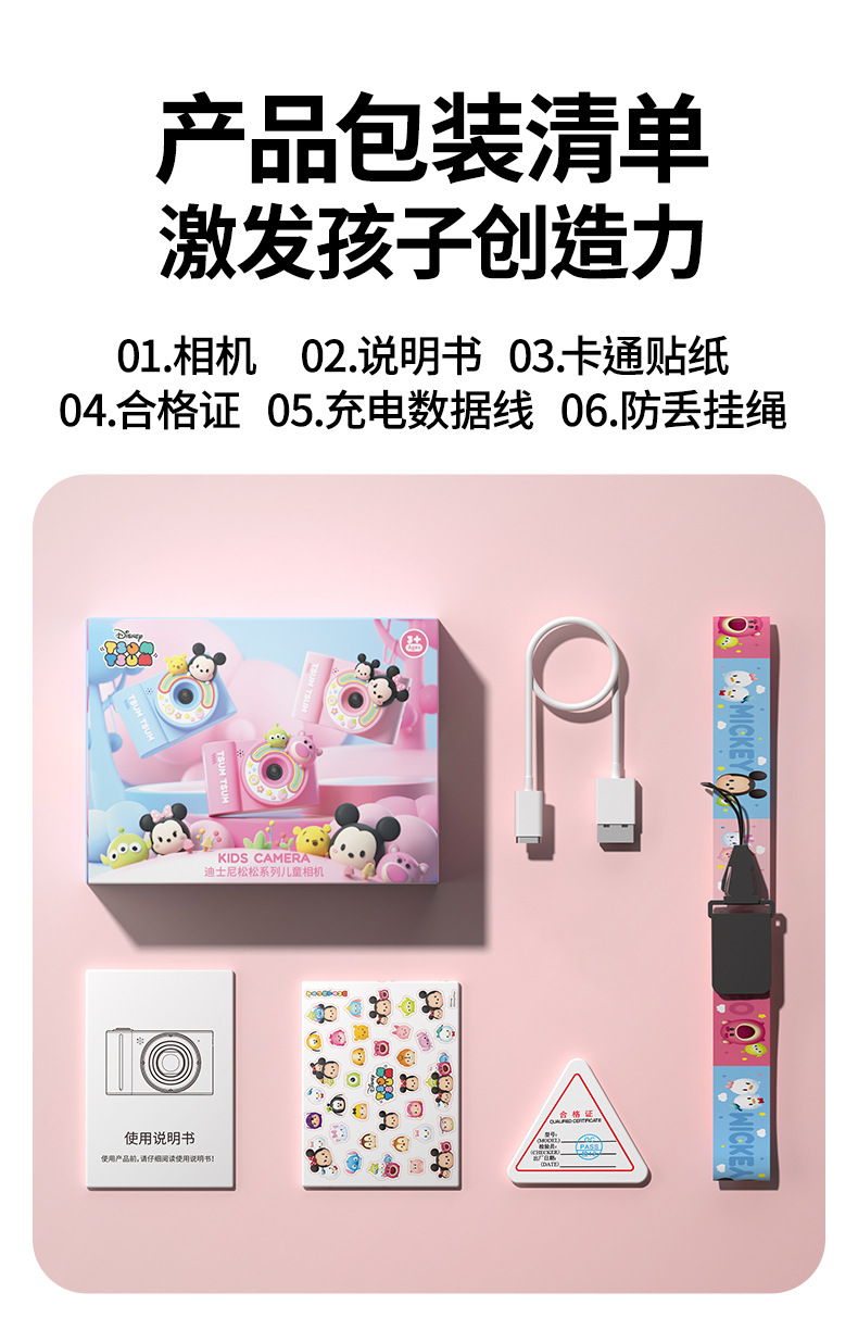 • 디즈니 미니 [상위 패키지: 가방 + 카메라 + 64G 카드 + 카드 리더기 + 어댑터 + 끈 + 만화 스티커 + 데이터 케이블 + 사용 설명서]