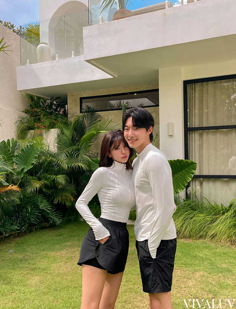 새로운 스타일 신선한 커플 수영복 지퍼 카디건 긴 소매 반바지 세트 해파리 원피스 슬림 배꼽 커버 휴가 수영복스토어 가기
