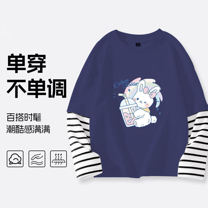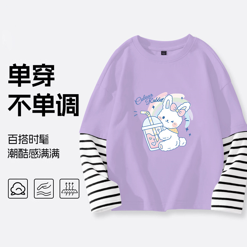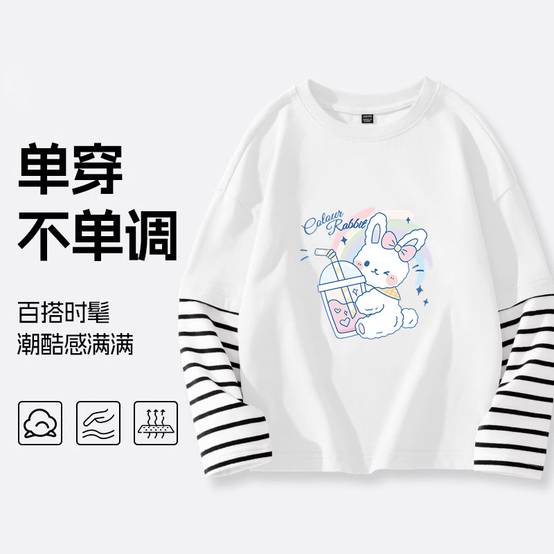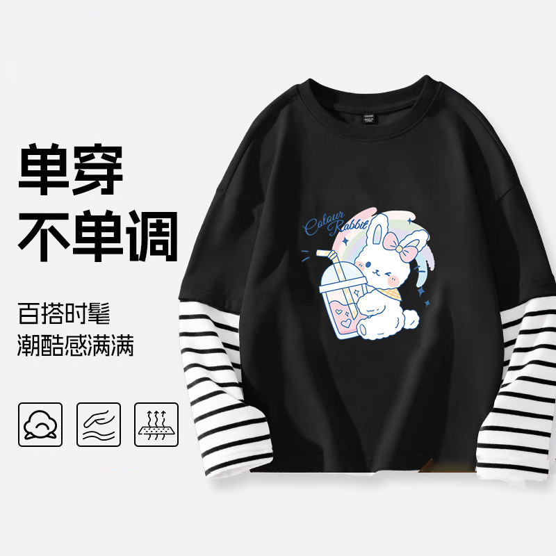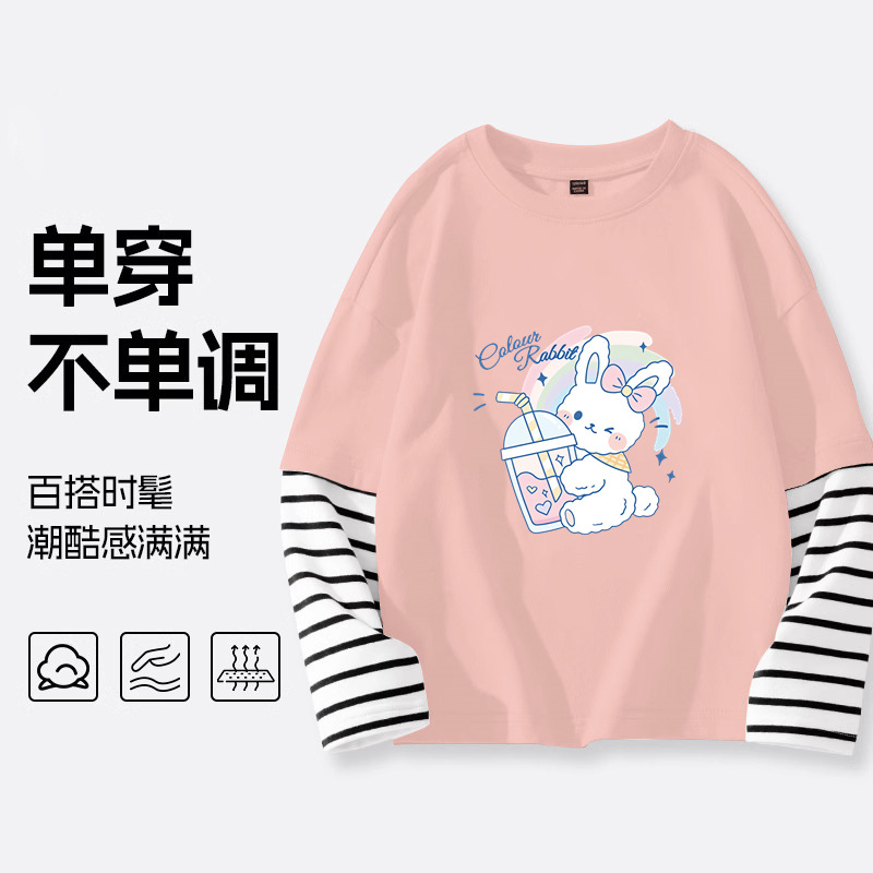 소녀 긴팔 티셔츠 2025 봄 새 어린이 가짜 투피스 긴팔 중첩 어린이 서양식 탑 봄스토어 가기