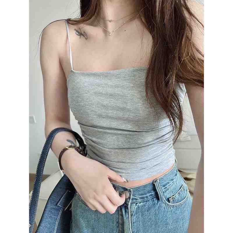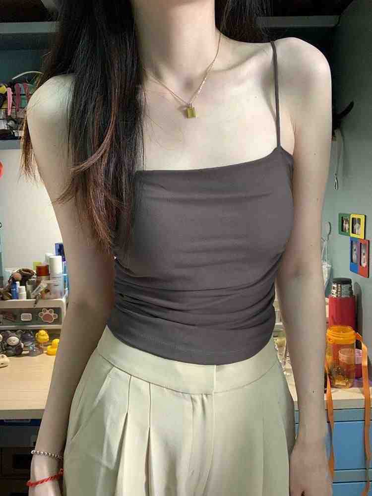 한국식 뜨거운 소녀 흉부 패드 포장 가슴 내베이스 슬리밍 민소매 쇼트 탑으로 얇은 슬링 아름다운 뒷조끼 주름