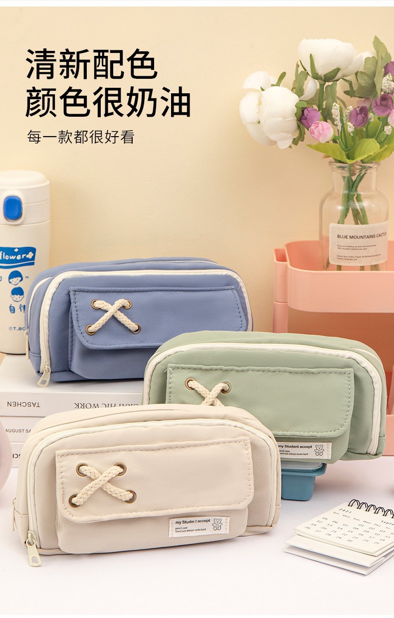마끈 필통 심플 일본식 남성용 문구류 여성용 중학생 고등학생 대용량 필통 다기능 수납스토어 가기
