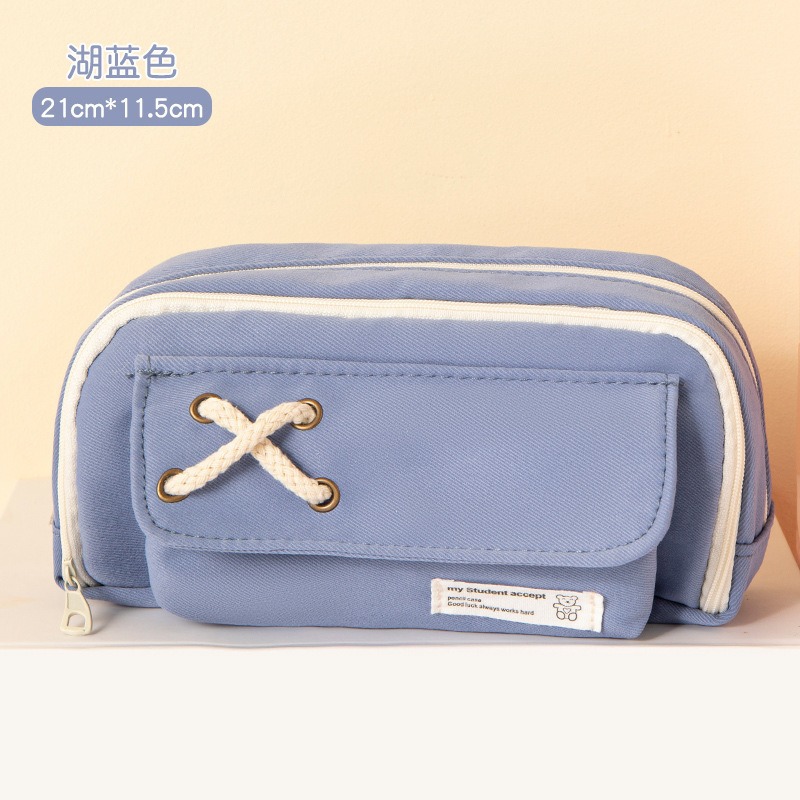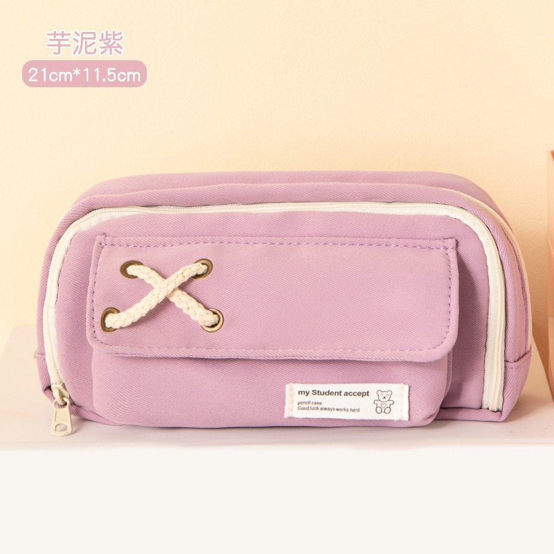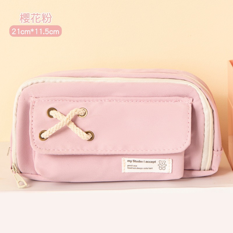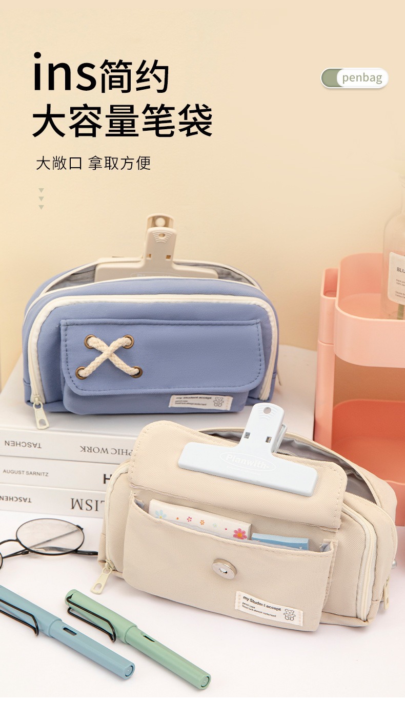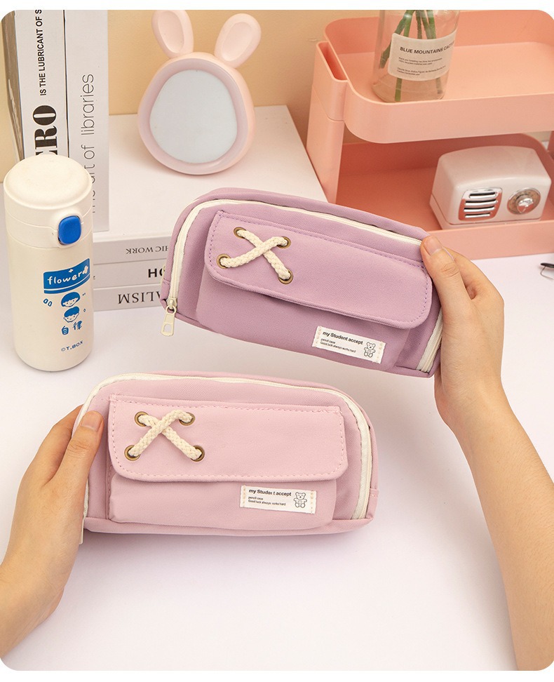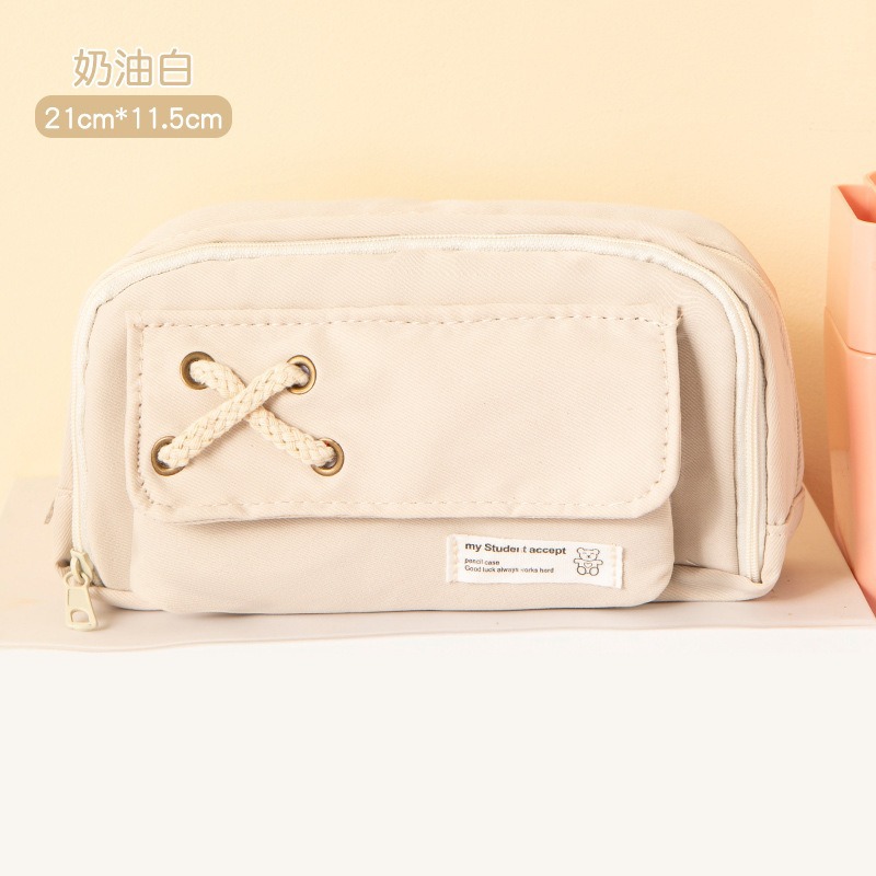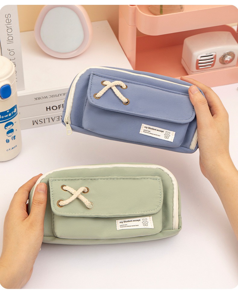 마끈 필통 심플 일본식 남성용 문구류 여성용 중학생 고등학생 대용량 필통 다기능 수납
