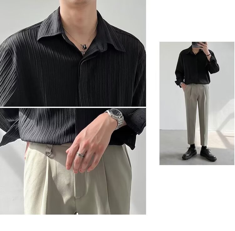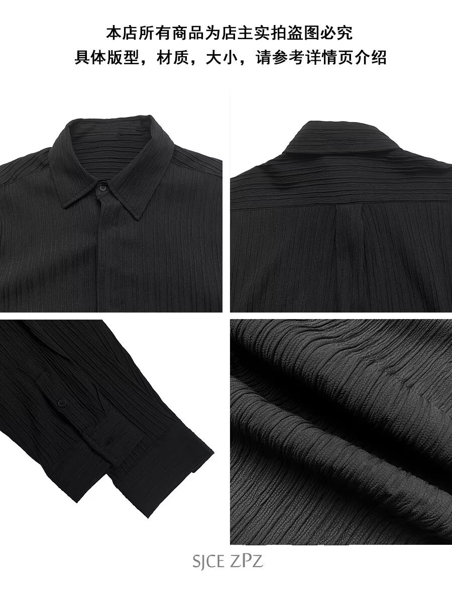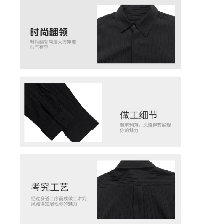 한국 스타일 다크 버튼 스트라이프 긴팔 질감 셔츠 여름 남성 청소년 한국 스타일 인기있는 핫 룩 솔리드 컬러 다림질 셔츠스토어 가기