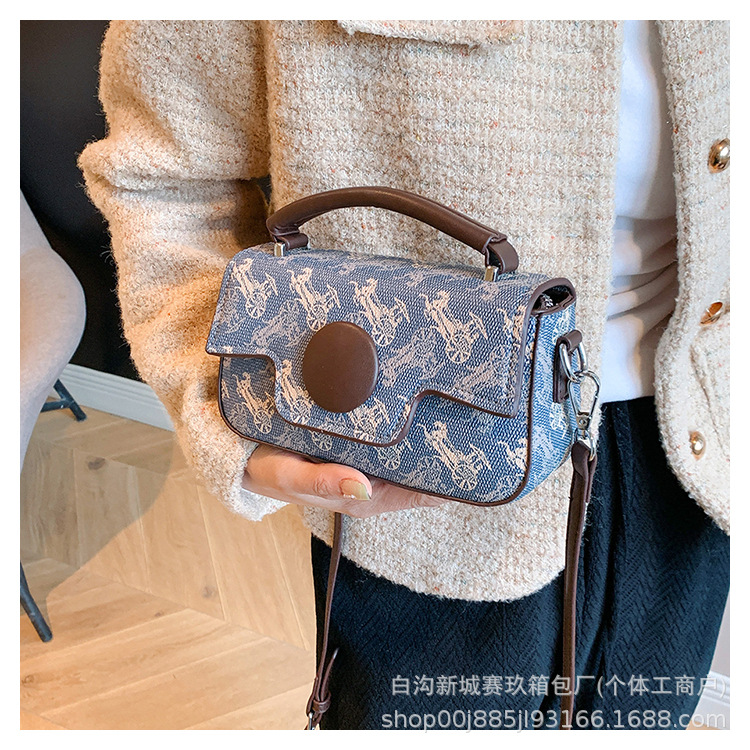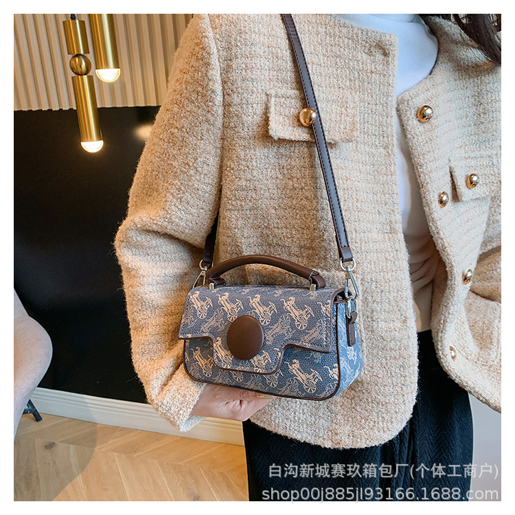 국경 간 하이 엔드 프랑스 스타일 휴대용 소형 가방 여성의 205 새로운 틈새 인쇄 어깨 작은 광장 가방 가벼운 고급 크로스 바디 백스토어 가기
