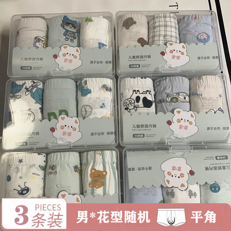 어린이용 순면 사계절 팬티, 무봉제 박스형 도매 신상품, 중소 어린이용 외출복으로도 착용 가능