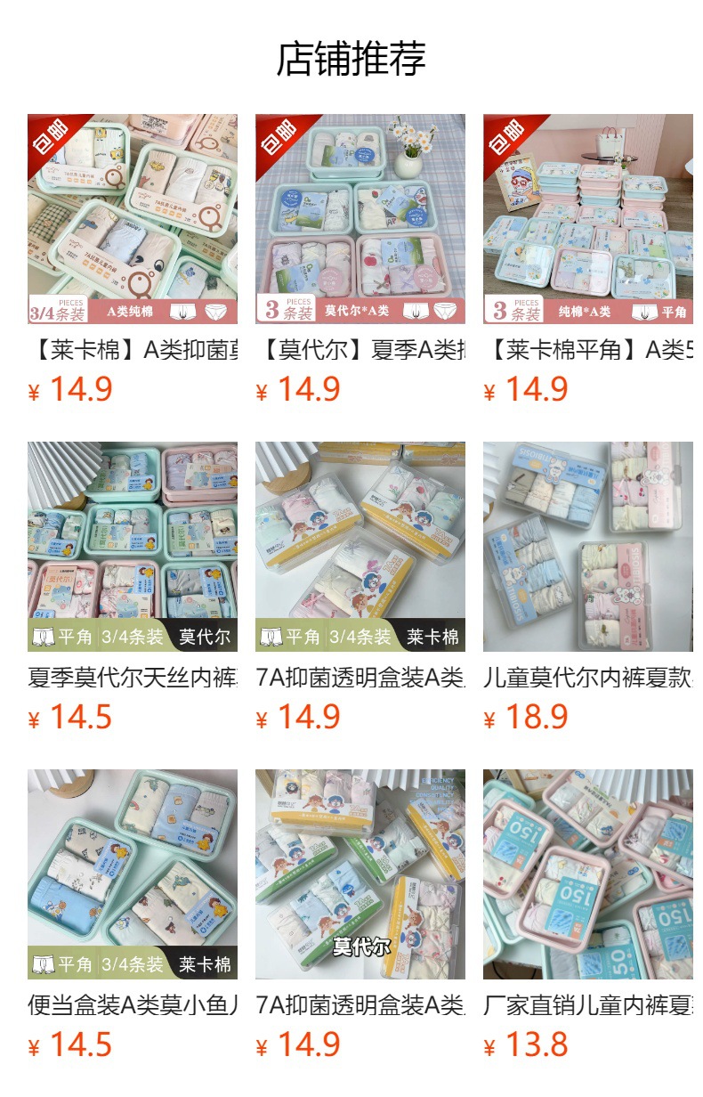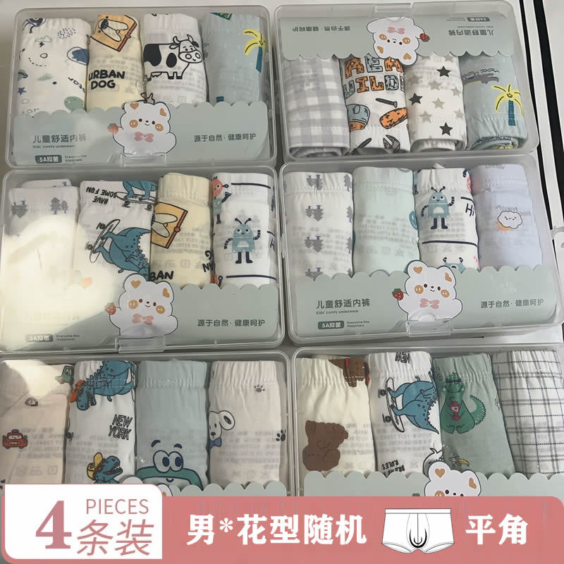 어린이용 순면 사계절 팬티, 무봉제 박스형 도매 신상품, 중소 어린이용 외출복으로도 착용 가능스토어 가기