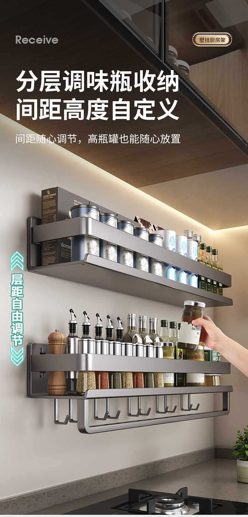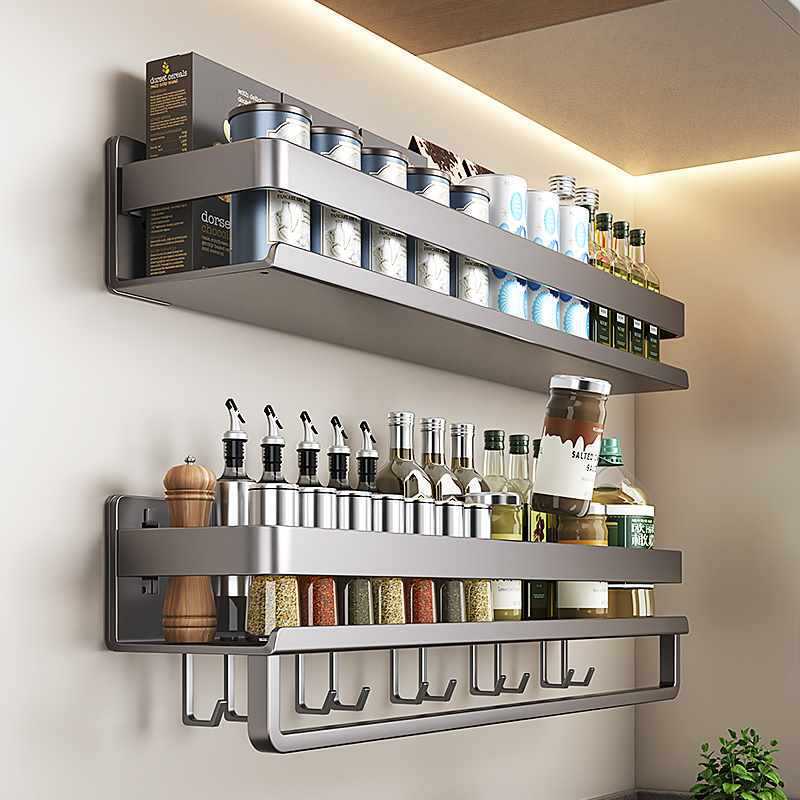 주방 보관 랙 벽 상단 제품 벽 매달린 조미료 양념 랙 펀칭 건 애쉬 저장 랙 조미료 가구