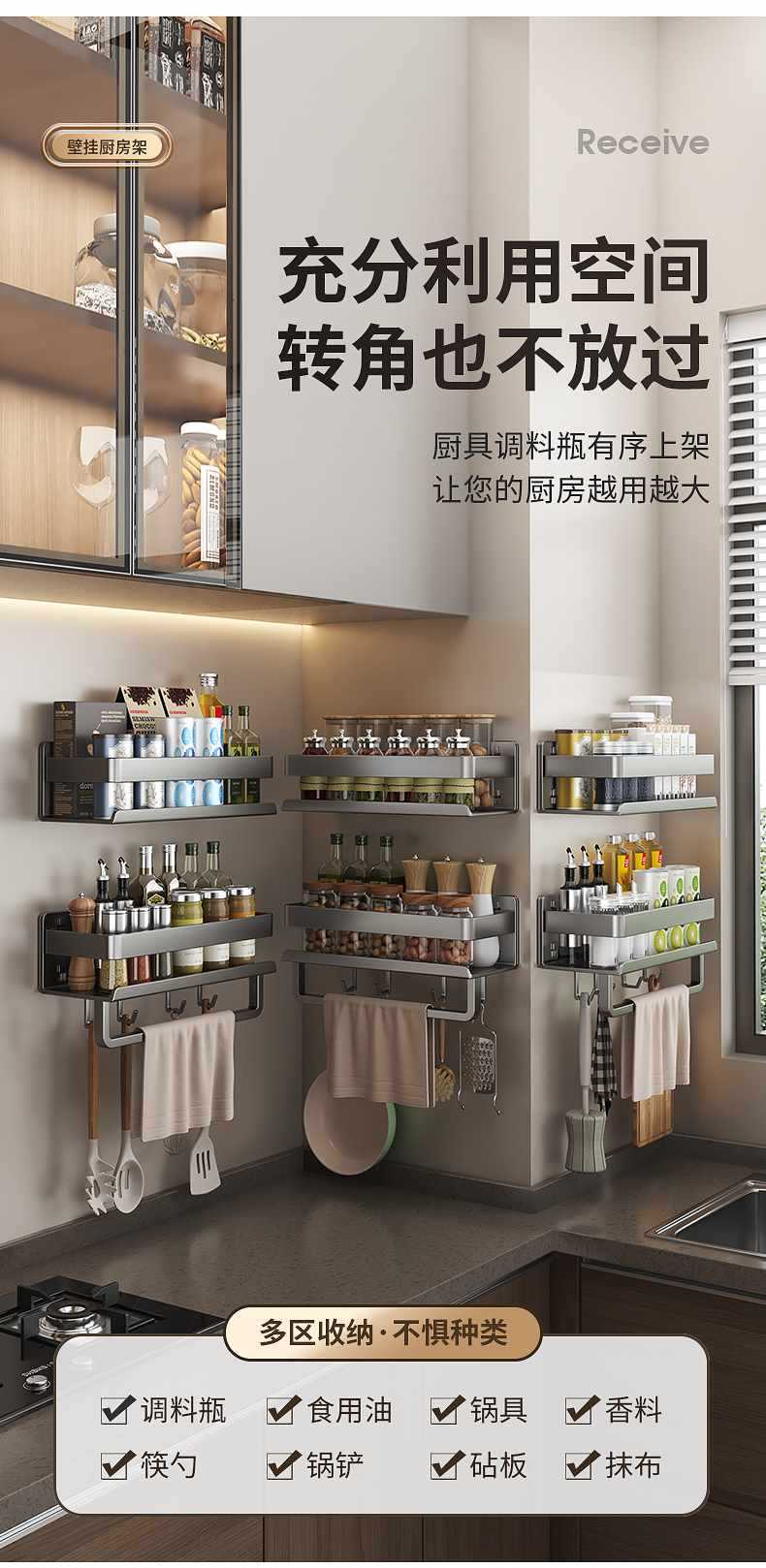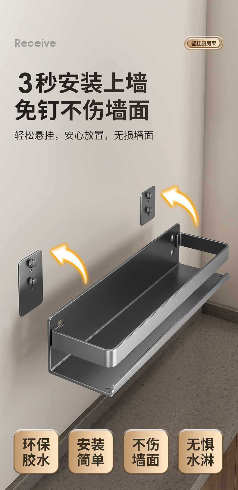 주방 보관 랙 벽 상단 제품 벽 매달린 조미료 양념 랙 펀칭 건 애쉬 저장 랙 조미료 가구스토어 가기